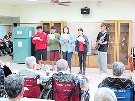 週日就是一年一度的母親節,來自中正大學國樂社的志工們為長者們帶來精采的歌曲及話劇演出,讓長者們提前度過溫馨的母親節。
