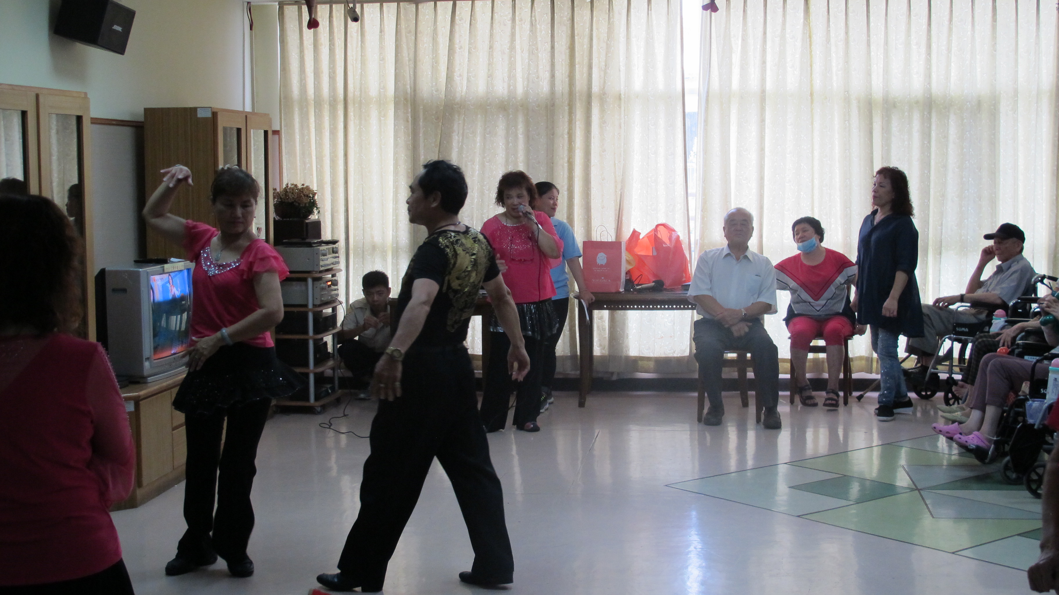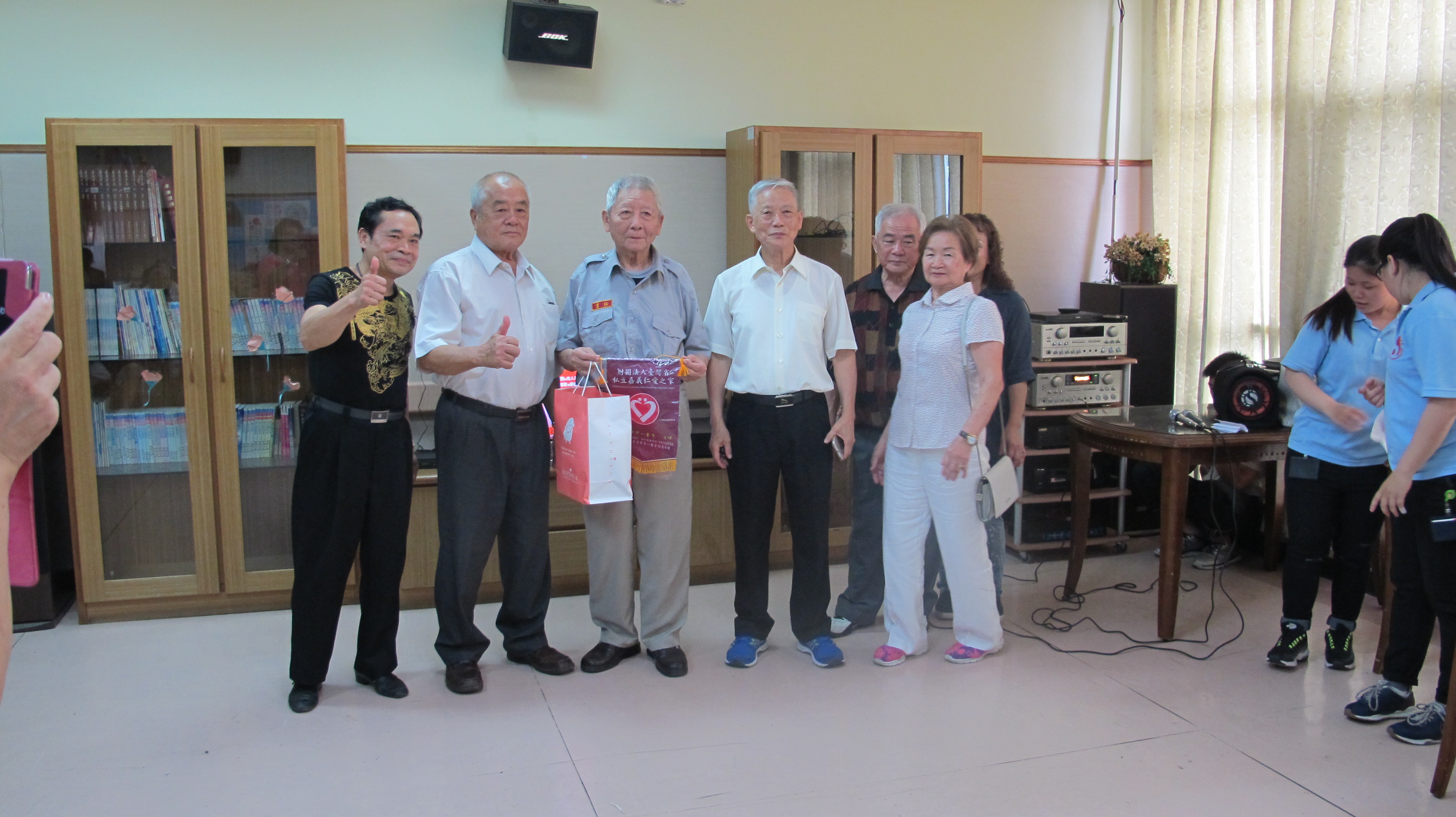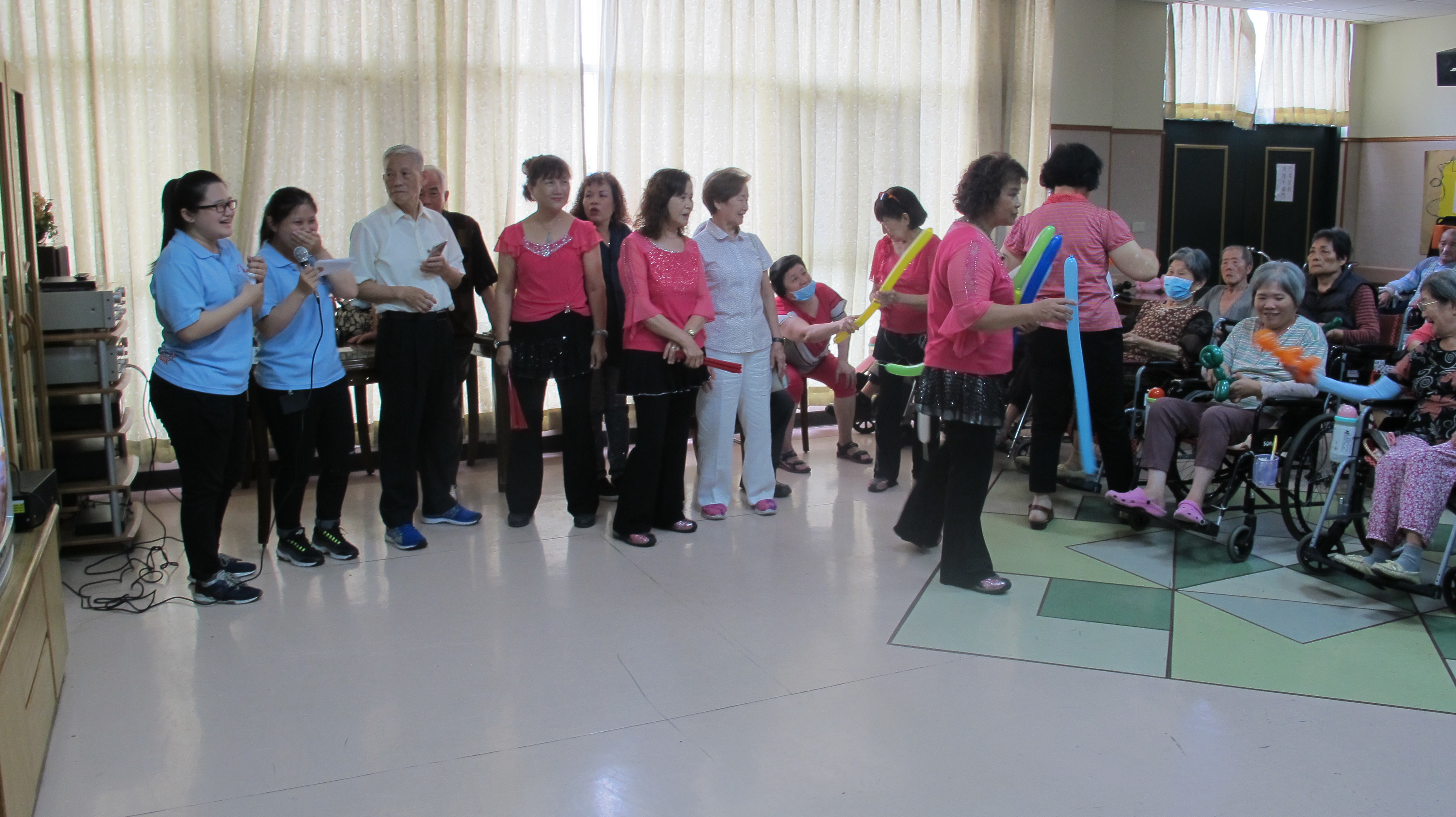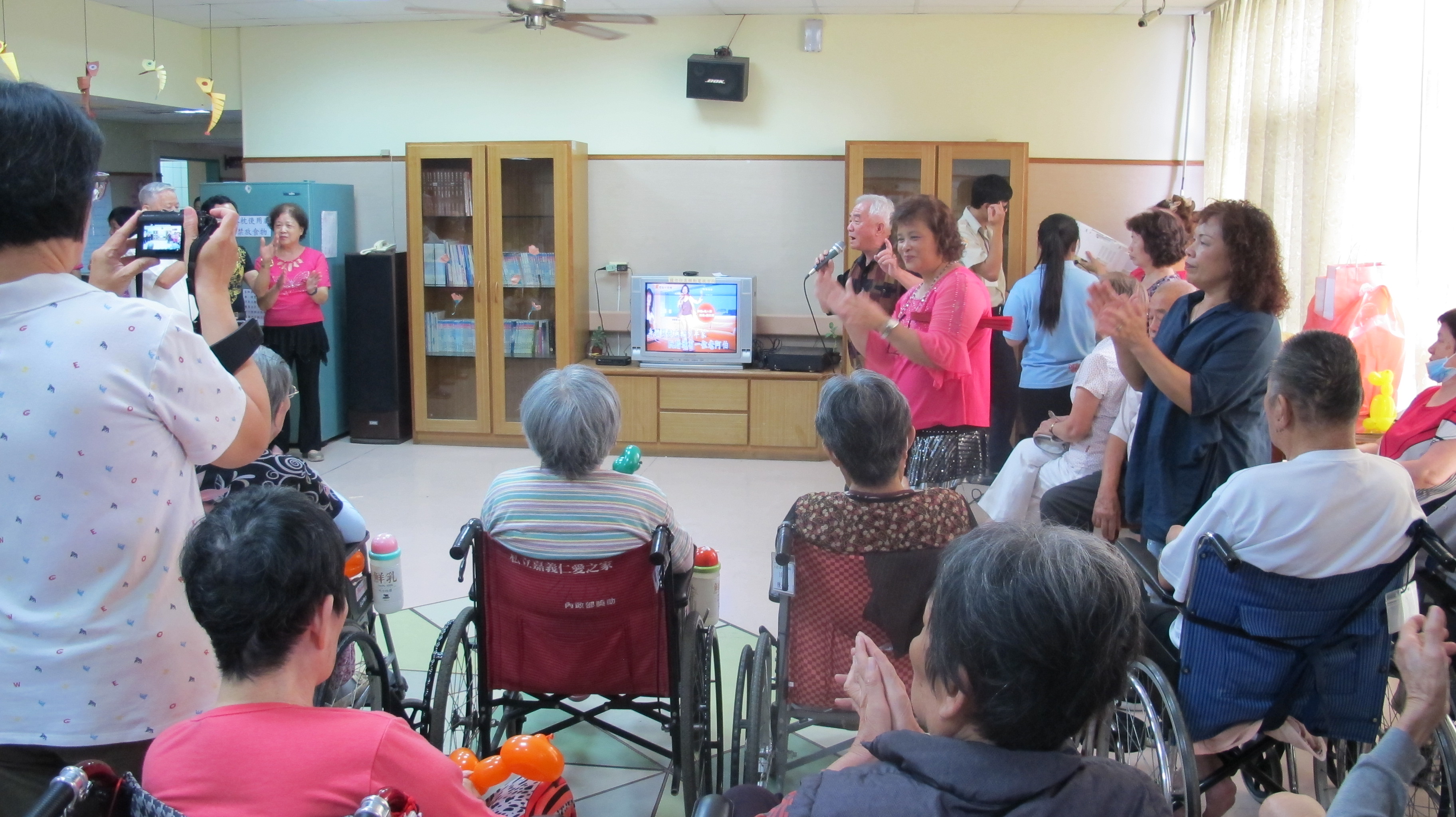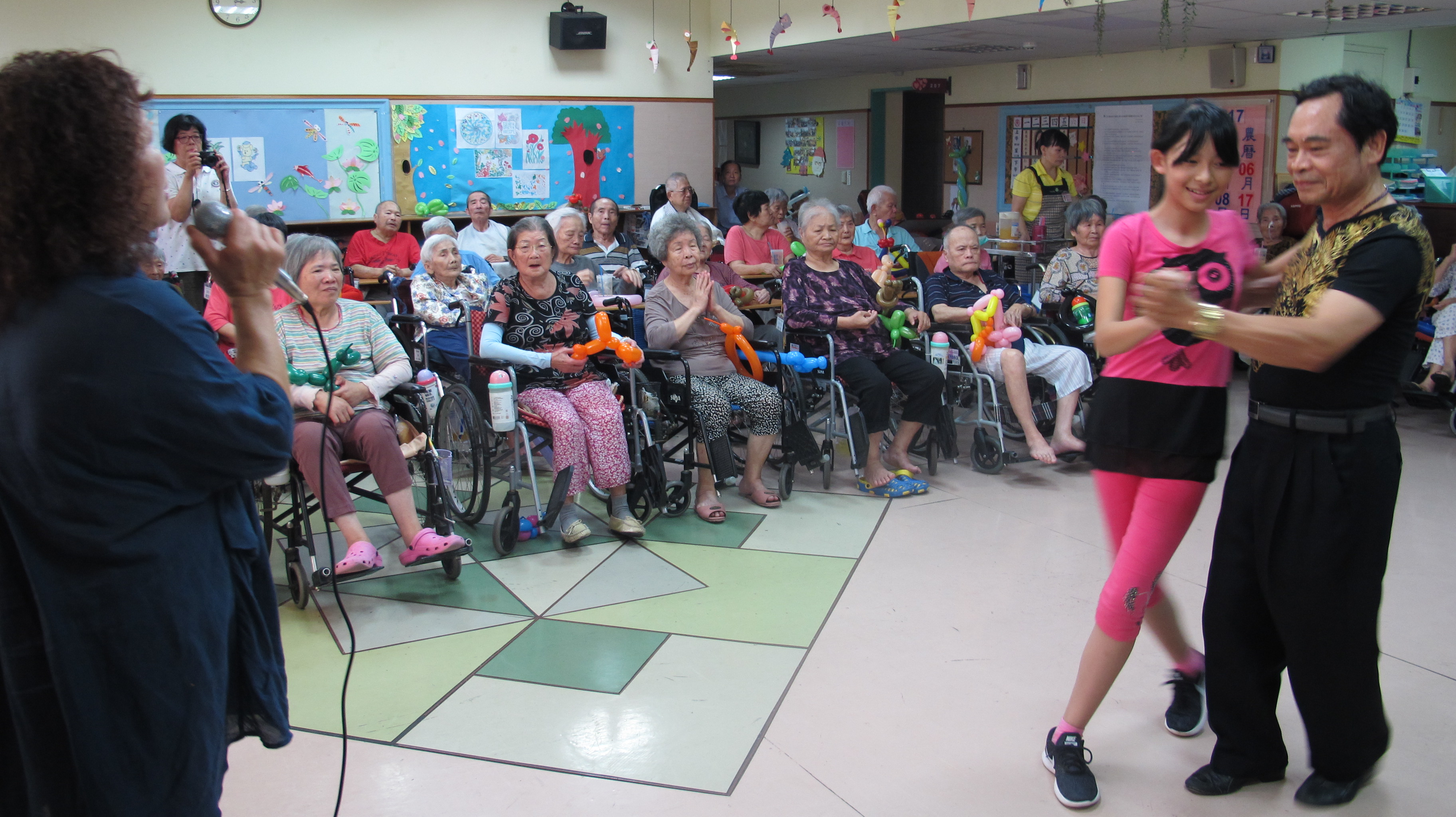 服務項目 活動剪影 節慶活動 2017-08-08父親節活動 今天是個非常溫馨的日子,為各位長者慶祝父親節,這次由本家實習生帶領活動,實習生邀請親戚朋友來到本家為長者慶祝。首先由竹崎老人會來表演跳舞(一定要堅強、心相印手牽手),接下來由歌友會帶來一系列勁歌熱舞(草地老阿伯、無聊的愛情、情淚、毛毛雨、心痛、港都夜雨、深情難捨),最後與長者互動折氣球來結束今天下午的活動。 返回