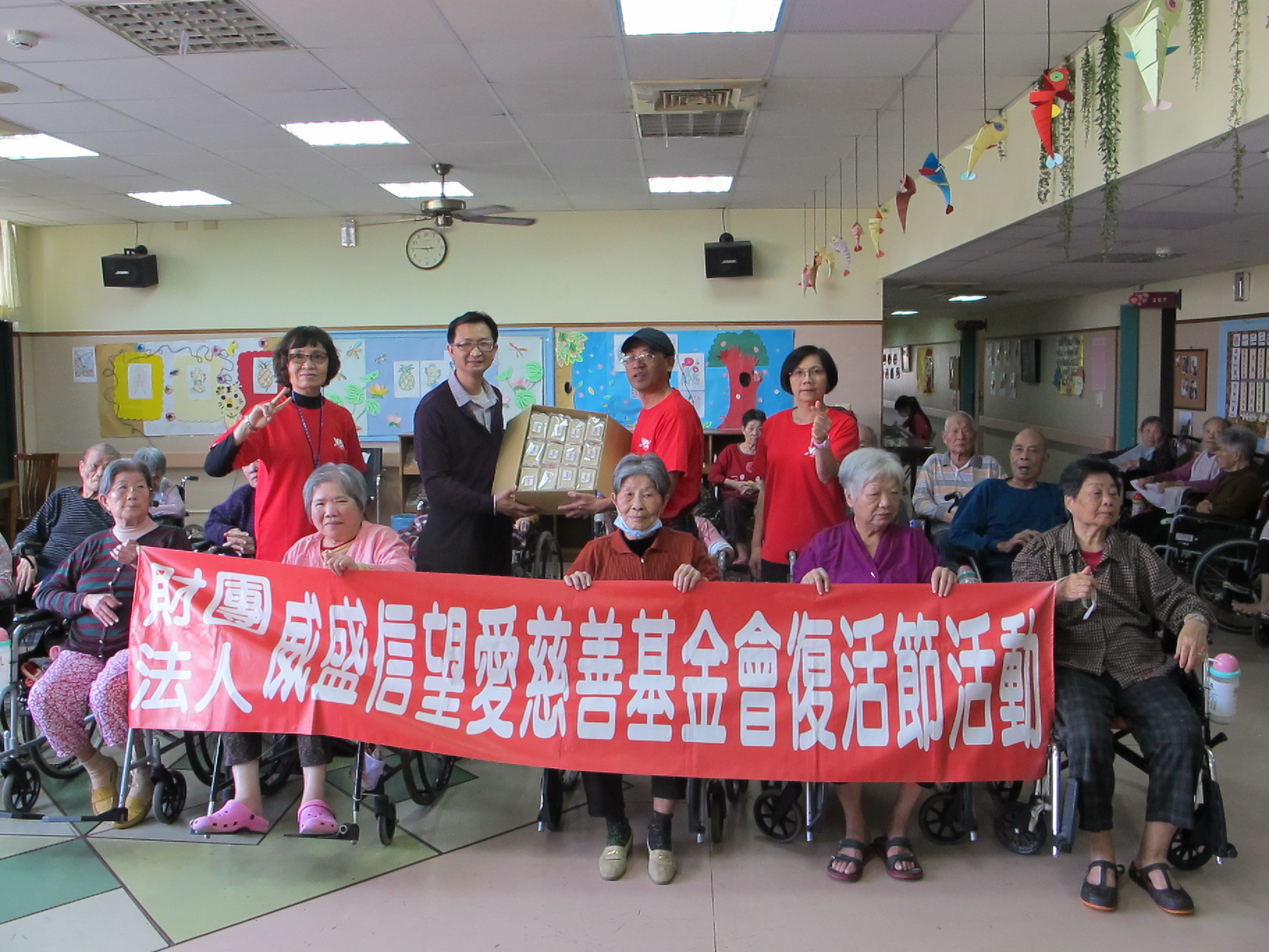 服務項目 活動剪影 節慶活動 2018-03-28 復活節活動 威盛信望愛的志工們今天來到本家,為長者們帶來精采的復活節的活動,並藉由講故事和帶動唱方式,向長者們說耶穌復活的故事,並認識復活節的由來,最後分給長者每人一個蛋糕,祝各位長者平安。 返回
