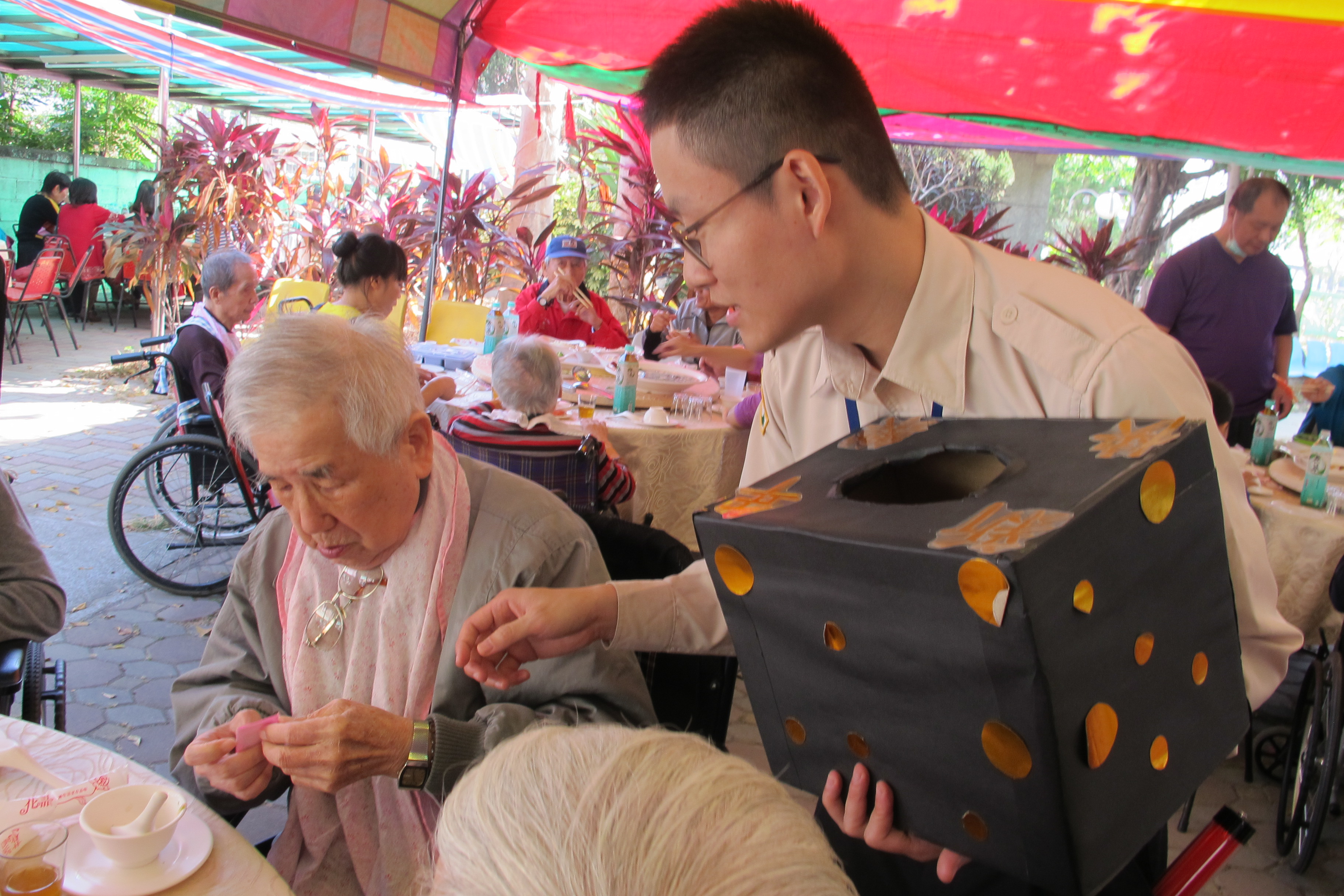 服務項目 活動剪影 節慶活動 2019-1-12-新春聯歡 今天是一年一度的新春聯歡活動,邀請了長者們的家屬、志工團隊及董事們一同共襄盛舉,天氣十分晴朗,活動流程首先由主任親自主持座談會,邀請家屬一同聆聽同時間,準備辦桌的設備及推長者們到定位,接著等到長者們開始用餐時,準備了摸彩箱至各樓層給長者們抽,人人抽到都有獎品,讓長者們度過歡樂的新春及難忘的回憶。 返回