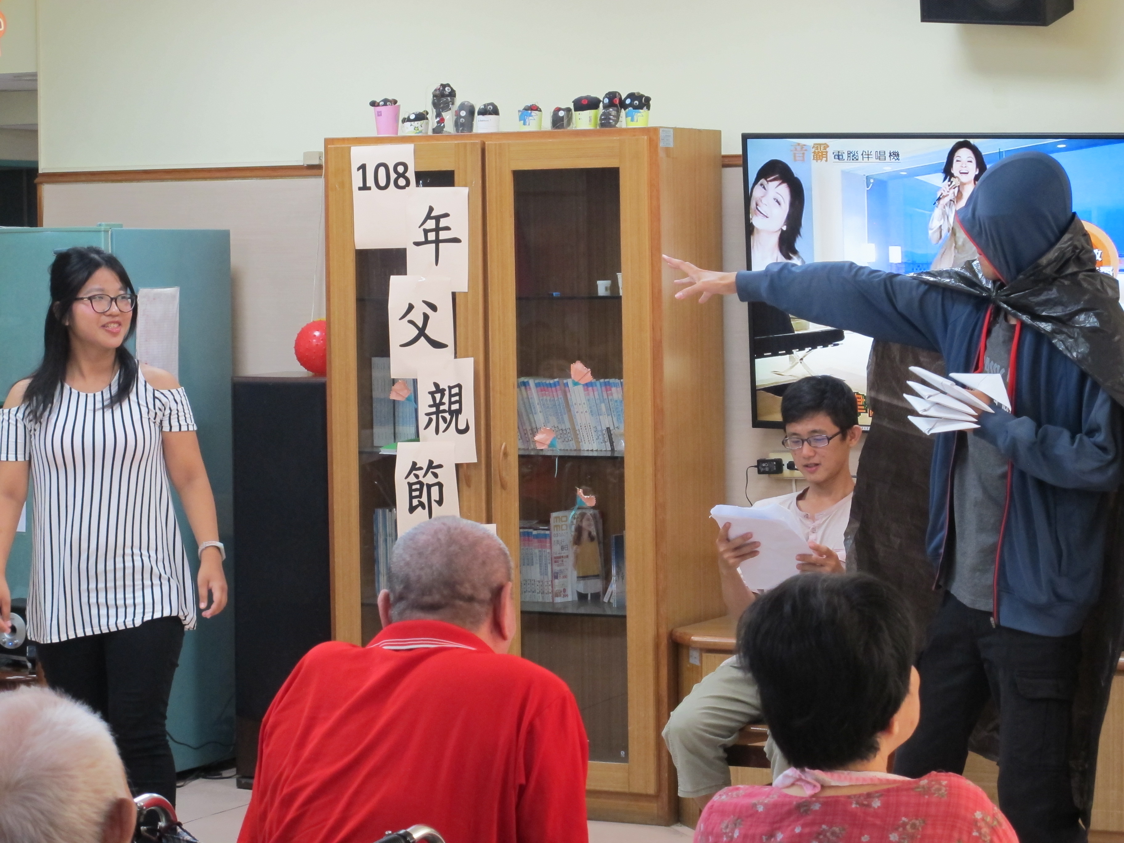 服務項目 活動剪影 節慶活動 2019-8-7-父親節活動 今天父親節很榮幸邀請到之前服役於本家的替代役學長回來表演,開場以精彩的歌聲,帶動現場的氣氛,後面有大同技術學院的學生帶來精彩的戲劇,讓長輩們看得很開心,最後就在快樂的歌聲中結束今天的活動。 返回