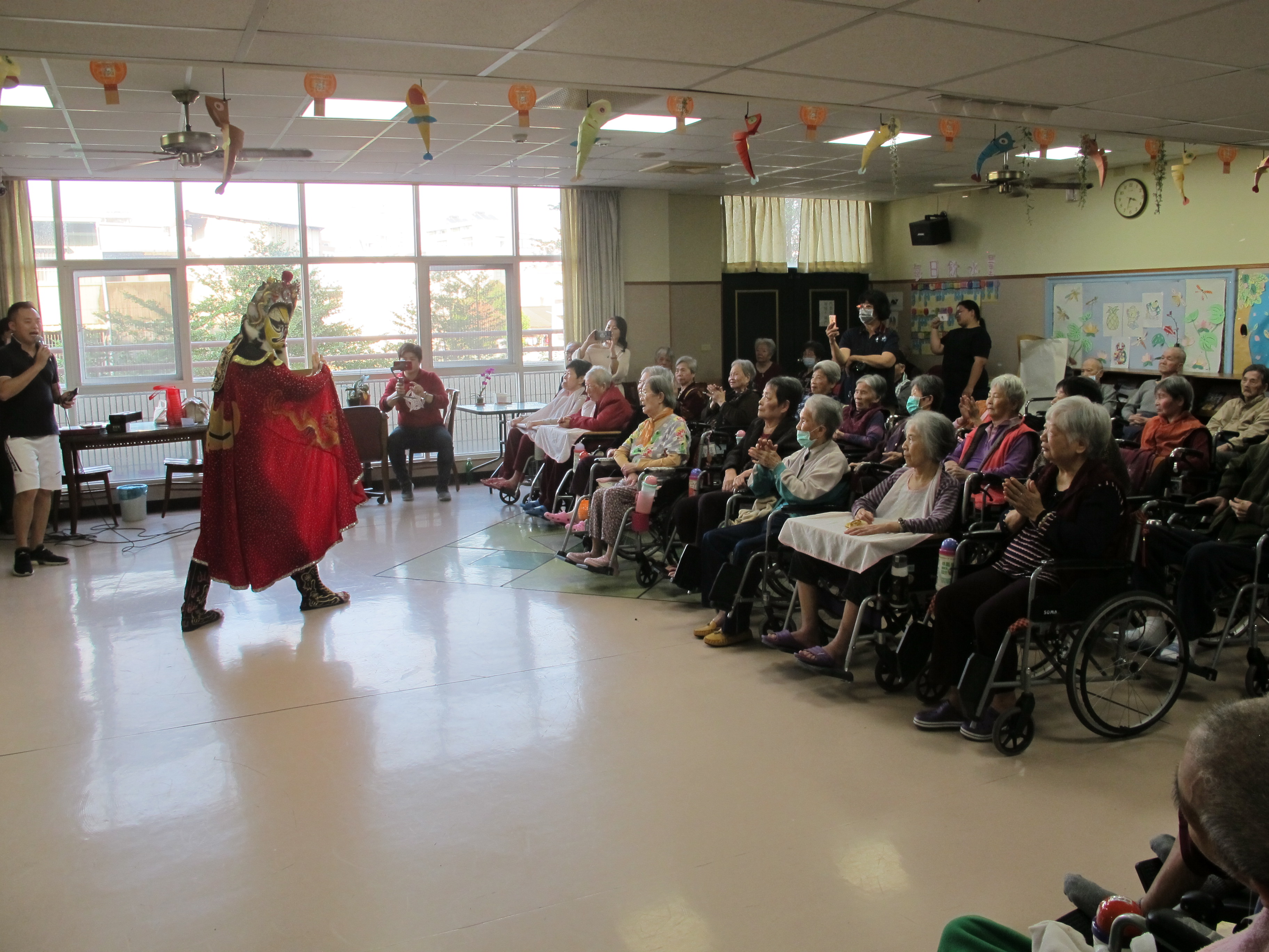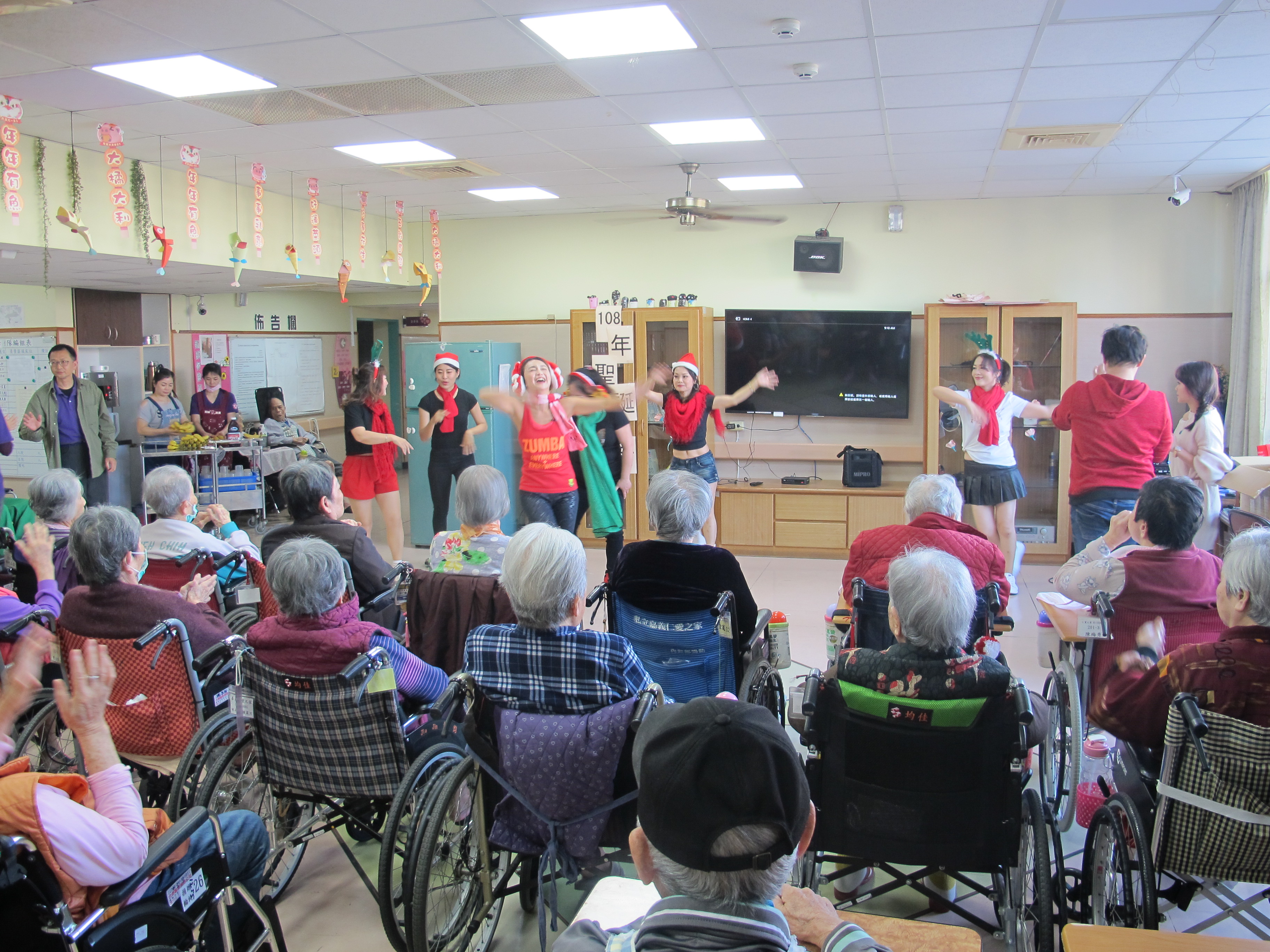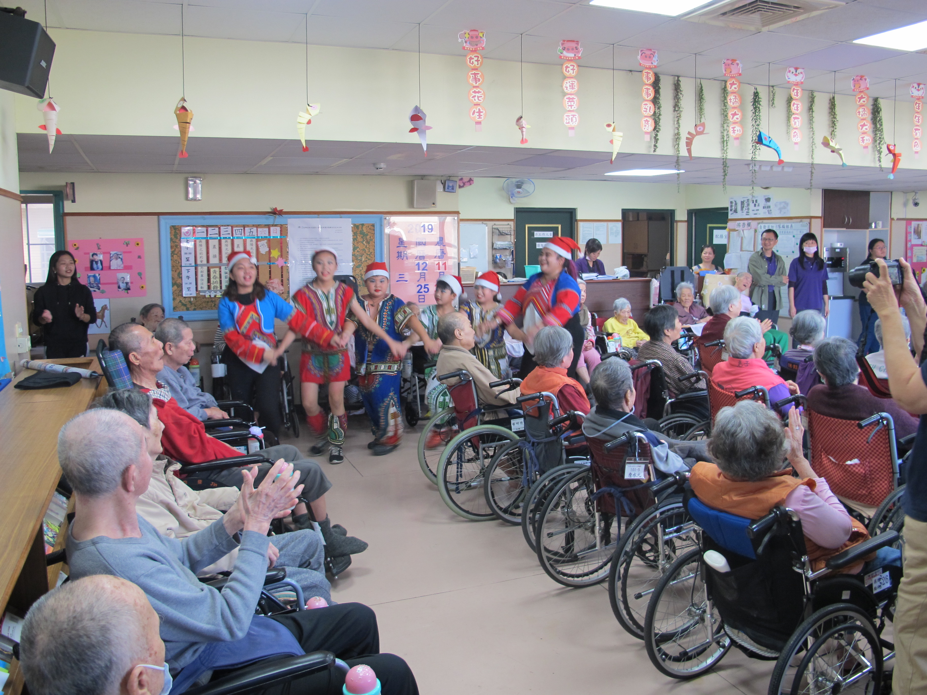 服務項目 活動剪影 節慶活動 2019-12-25-聖誕節活動 又到了一年一度的聖誕節,火焰舞蹈團的大姐們帶來了動感熱血的舞蹈炒熱活動氣氛,長輩們很開心跟著跳,緊接著龍鳳兒舞蹈團富有聖誕氣氛與原住民風格的舞蹈,帶給阿公阿嬤們聖誕歡樂,最後亞瑟魔術團團員帶來精彩的變臉魔術表演,阿公阿嬤們看得目不轉睛、目瞪口呆,以及兩位主持人的串場唱台語老歌與贈送聖誕節禮物,讓阿公阿嬤們有個歡樂與難忘的聖誕節時光。 返回