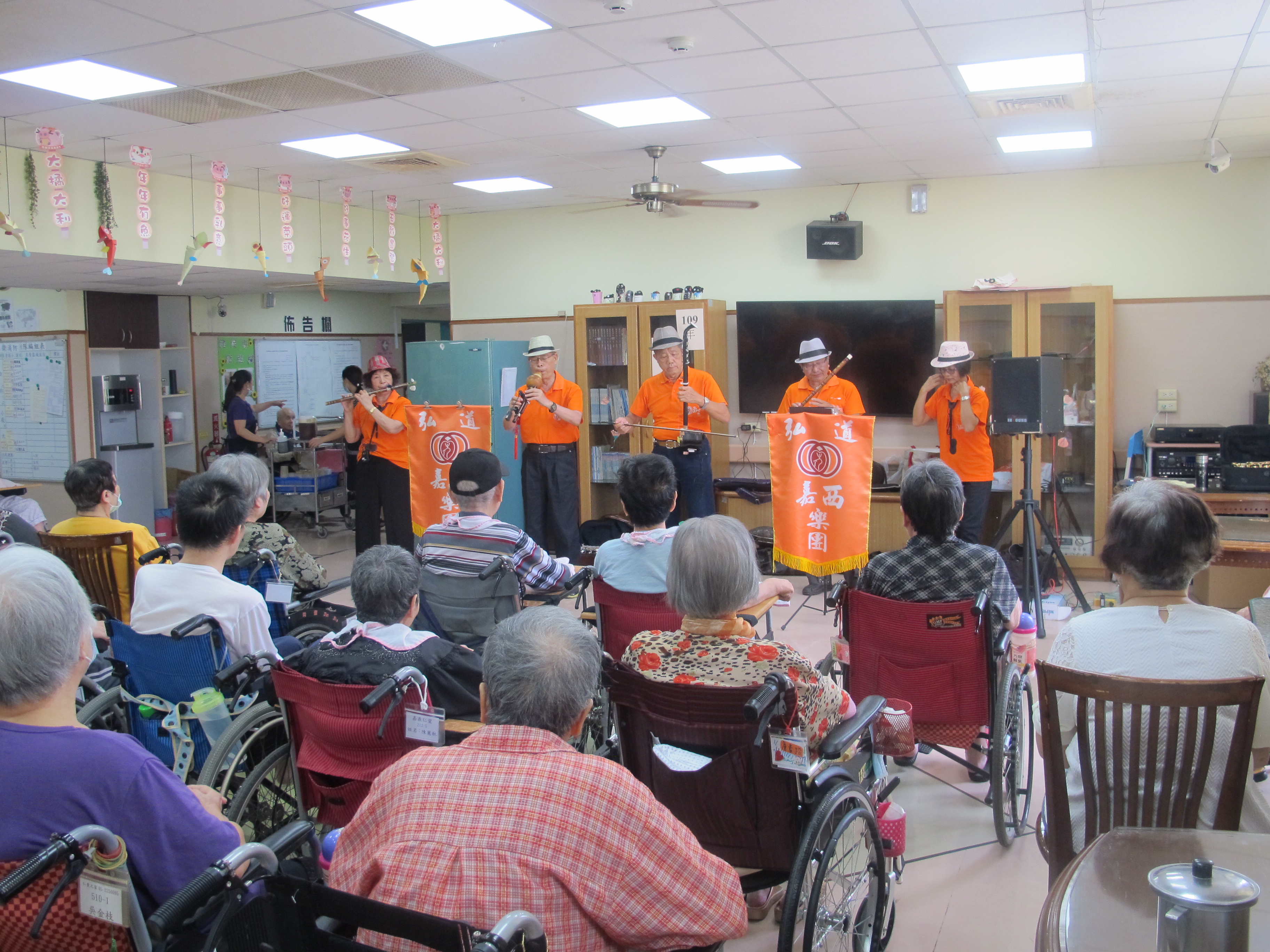 服務項目 活動剪影 節慶活動 2020-09-24中秋節活動 由弘道嘉西樂團帶來精彩的精采國樂演奏,用音樂撫慰長輩的心,許多長輩聽著老歌,哼唱著、也互相分享著過往回憶,並在最後祝福長輩們中秋佳節愉快! 返回