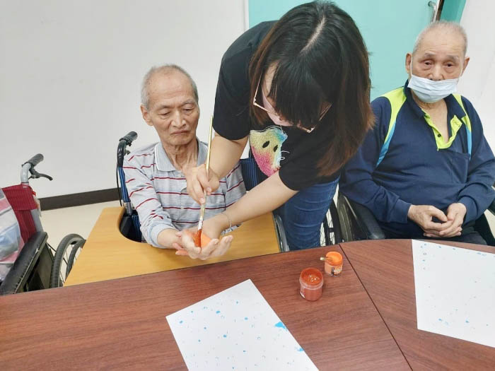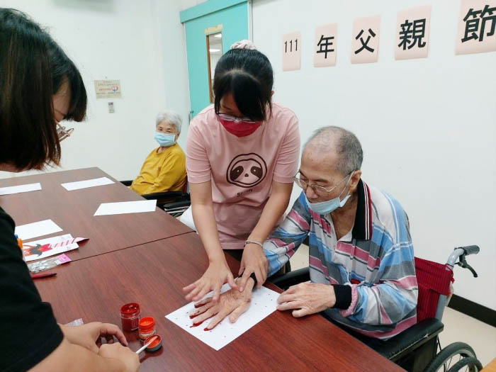 服務項目 活動剪影 節慶活動 2022-08-03 父親節活動 父親節活動 今天下午舉辦父親節活動,由社工,社工實習生和長者打招呼,並介紹活動創意,運用水彩彩繪在長者掌心,再將顏料蓋在底紙上,將素材拼貼在底紙上進行創作,讓住民提前感受過父親節的氛圍。 返回