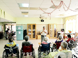 服務項目 活動剪影 志工團體 2015-06-16威盛信望愛活動 今天威盛信望愛來到本家機構關懷長者們,帶著長者們先做手部運動,在來播放詩歌、端午節民謠和帶動唱給長者們聽(民謠:燒肉粽),還有阿順兄講古給大家聽,長者們都聽得津津樂道,讓長者們度過一個開心喜樂的下午。 返回