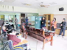 今天嘉義教會的志工們來到本家,到各樓層關懷長者們並演唱我的救主、耶和華祝福滿滿和給我心平安教會詩歌,讓長者們度過一個愉快的下午!