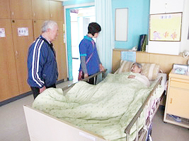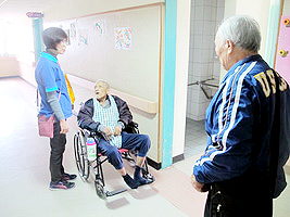 今天信望愛的鳳梨伯和仙桃姐來到本家關懷長者,到三樓與臥床的長者們聊天互動,讓長者們有個愉悅的下午。