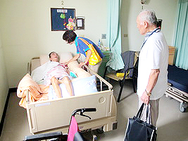 信望愛的鳳梨伯和仙桃姐來到本家,到樓層與長者們聊天並關懷長者,讓長者們有個溫暖的下午。