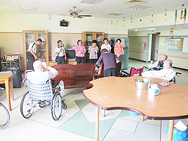 今天,教會的志工們到本家關懷長者,帶來天天操練過日子、耶穌拯救世間人、耶穌我的主等歌曲的演唱,讓長者們感到舒坦!!