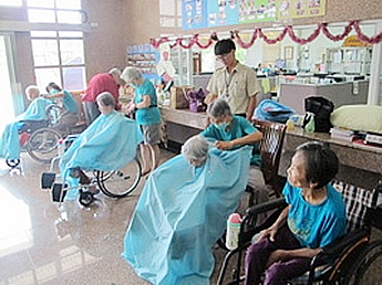 今日早晨有多位熱心的志工,來到本家為一、五樓的長者們修剪頭髮,長者們都非常喜悅,給長者們在炎熱的夏天中有一個新氣象!