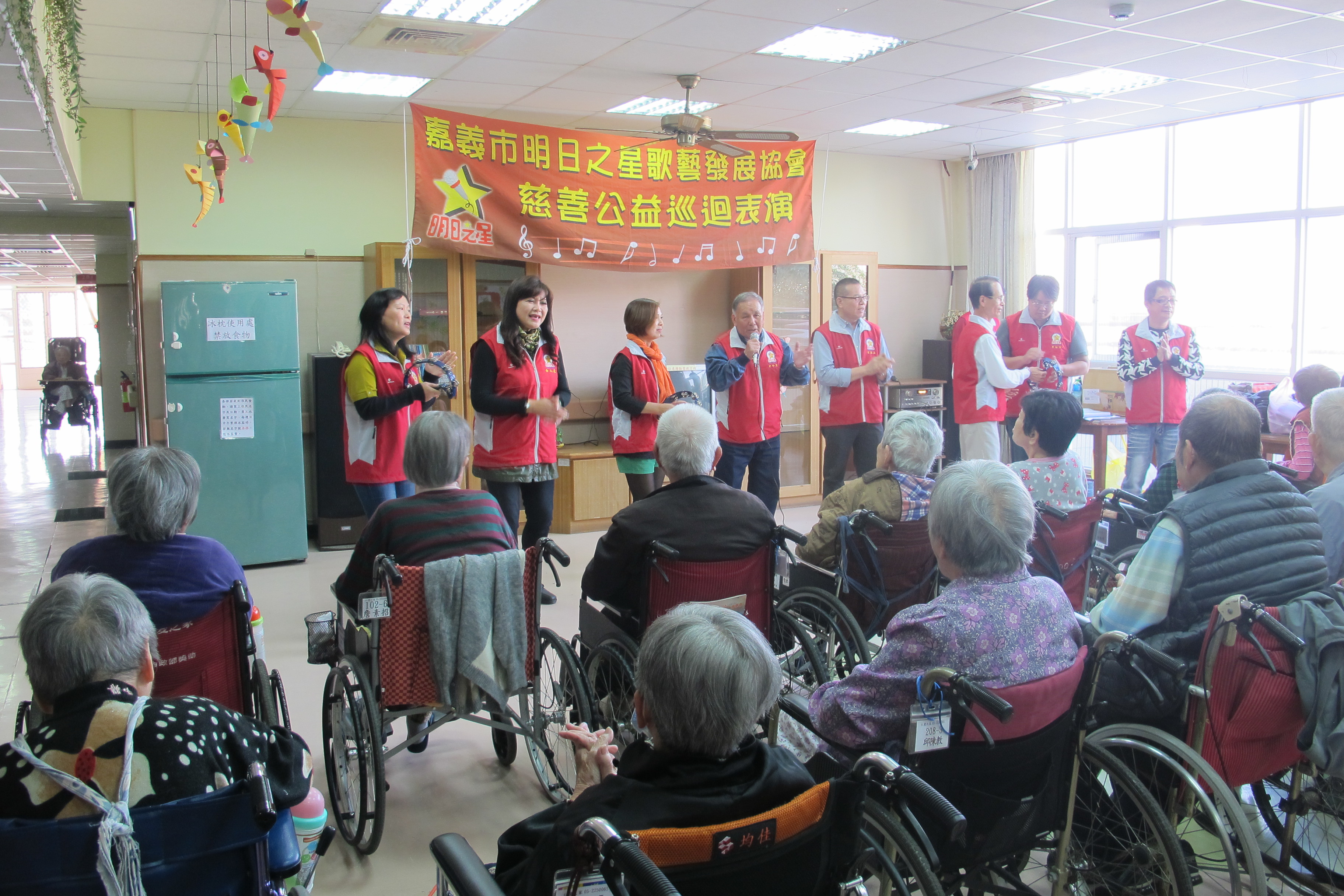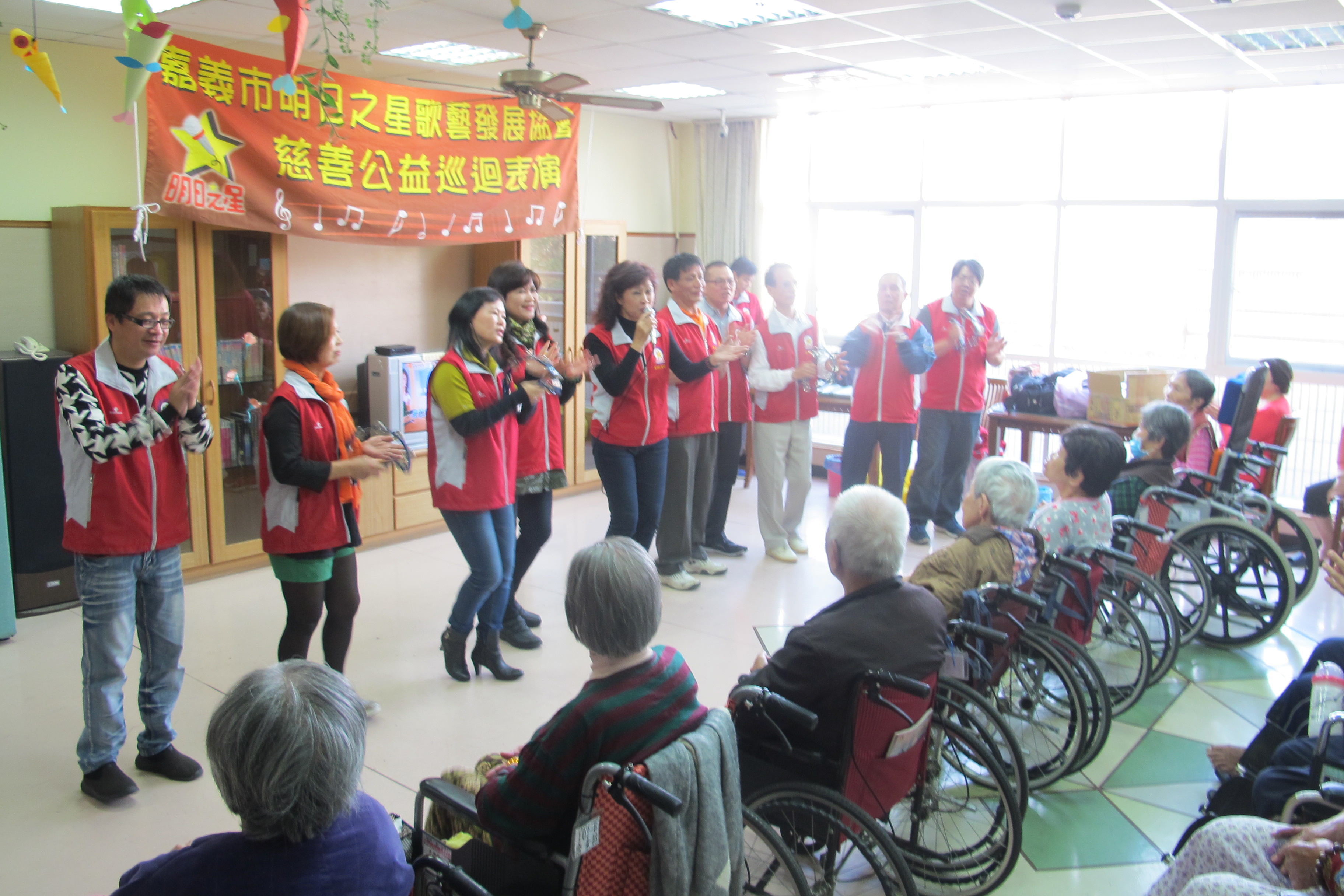 服務項目 活動剪影 志工團體 2017-02-15-明日之星歌藝發展協會 今日非常感謝嘉義市明日之星歌藝發展協會來到本家關懷長者,並表演多首膾炙人口的台語歌曲(滿山春色、愛人醉落去、失去節奏的探戈、陳三五娘、今夜又擱想起你、愛拚才會贏、甜蜜蜜、懷春曲、阿母的手、疼妳若生命、彼個小姑娘、吃苦當作吃補),讓長者們非常開心津津樂道。 返回