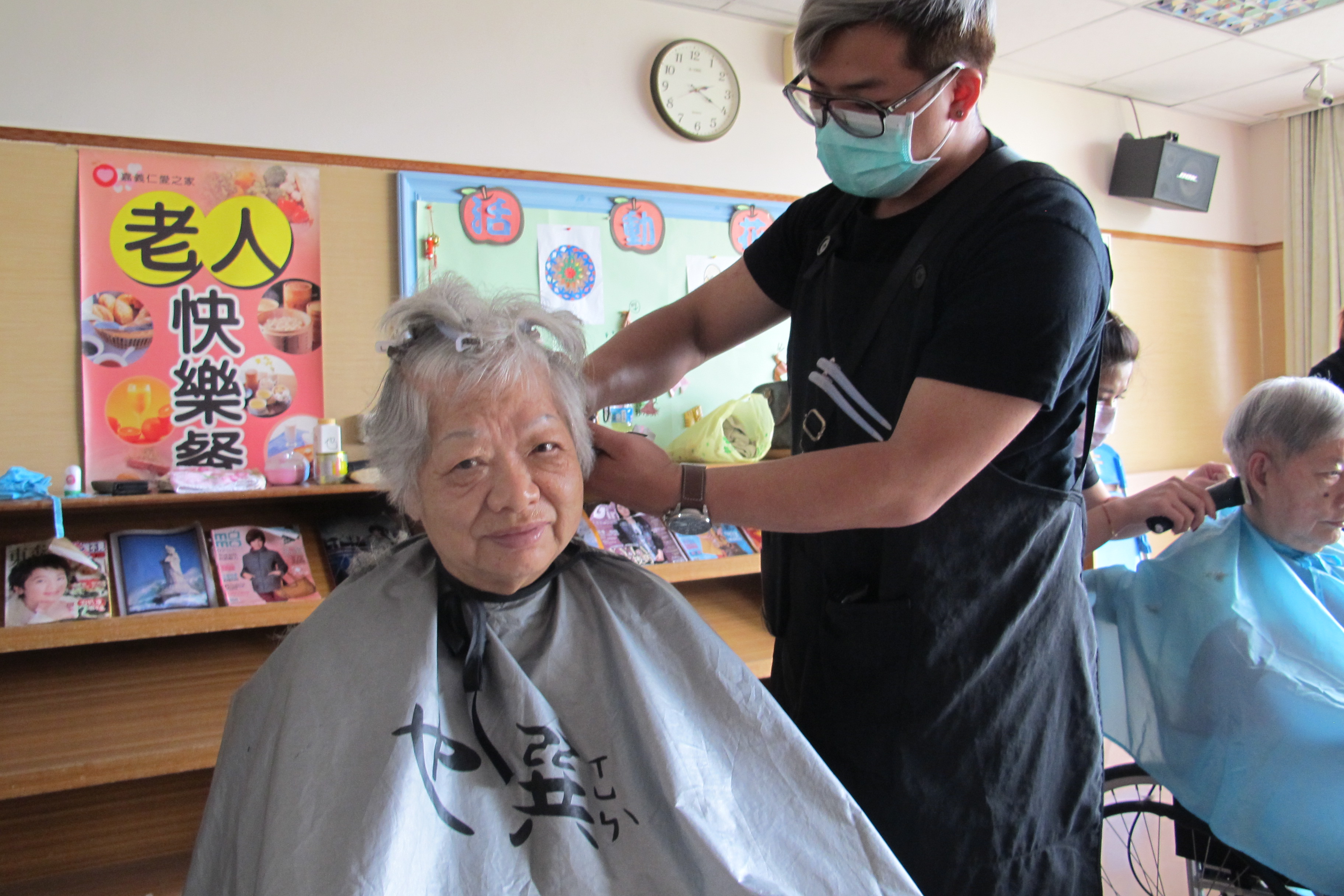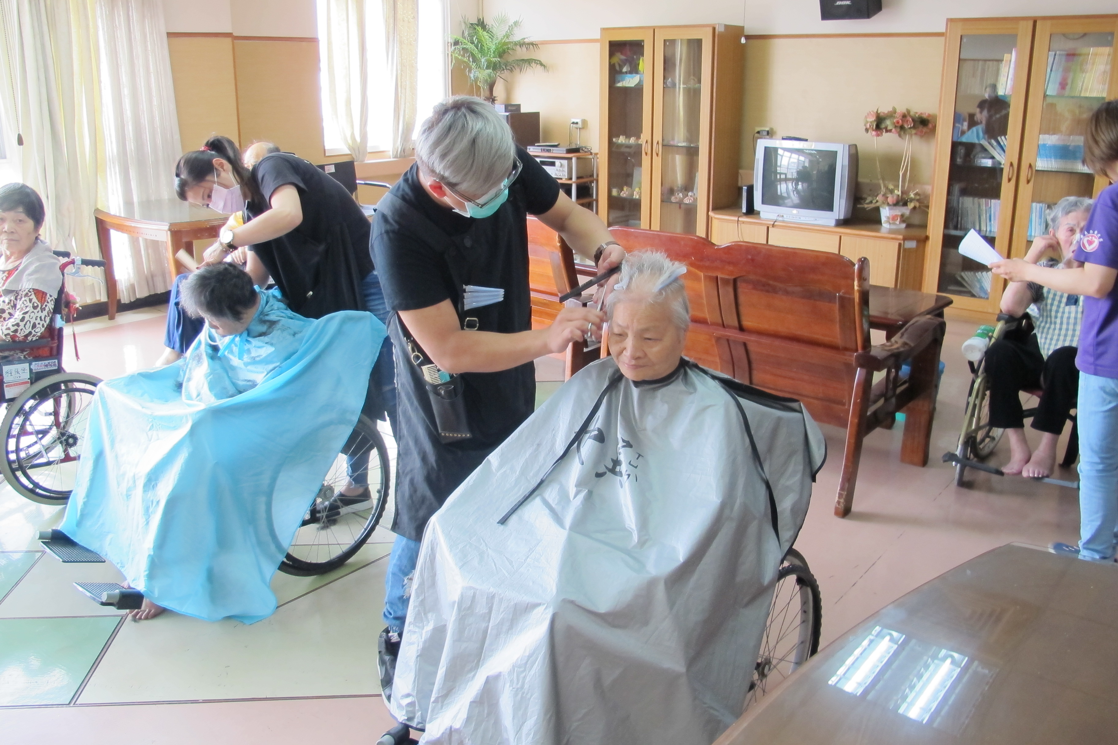 服務項目 活動剪影 志工團體 2017-05-08-也巽義剪 今天特別邀請到也巽造型的設計師們來到本家為長者們整理儀容。設計師們非常細心的幫每位長者修剪頭髮,長者們也十分感謝設計師們的辛勞,最後在歡笑聲中結束了今天的義剪活動。 返回