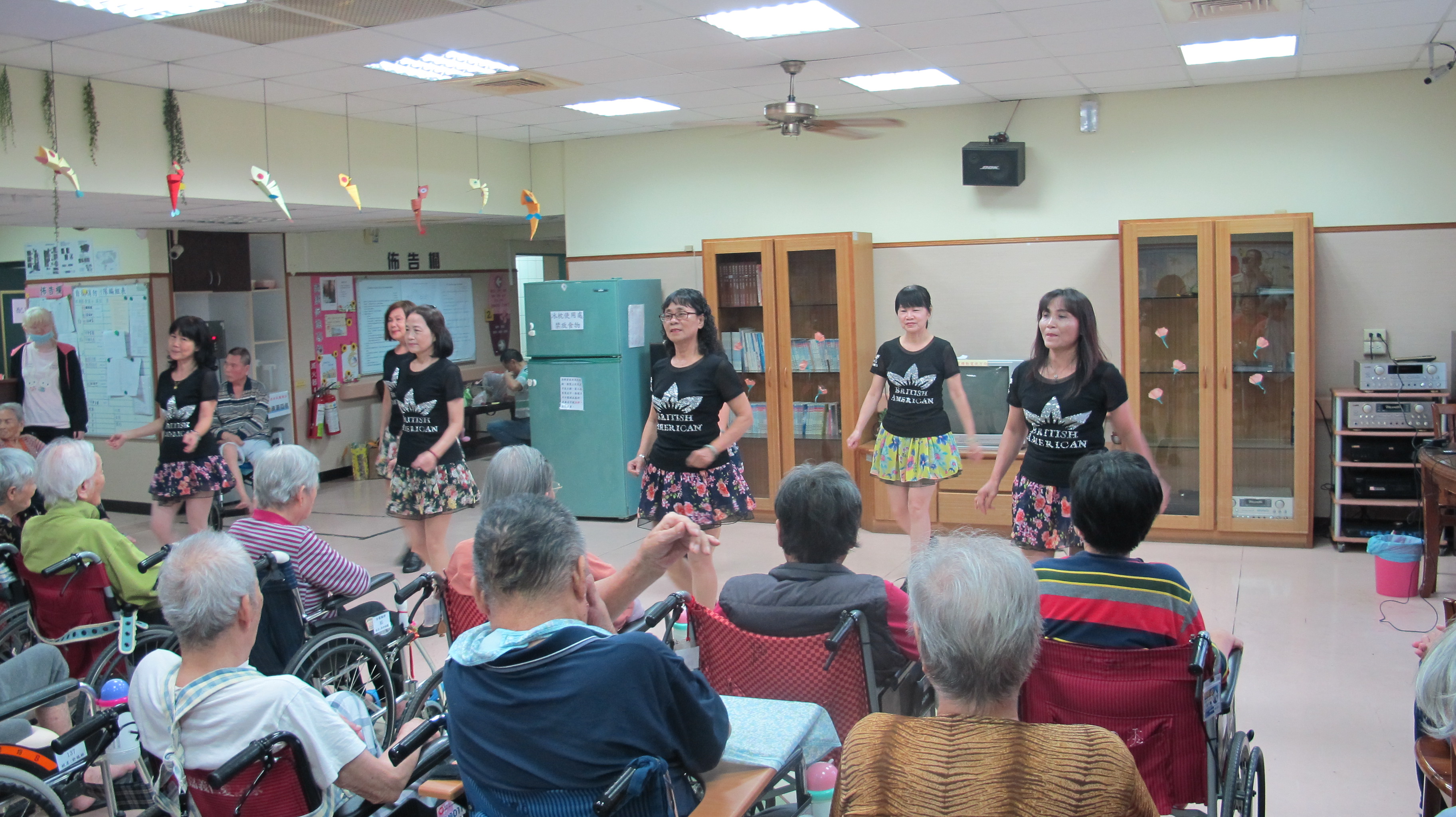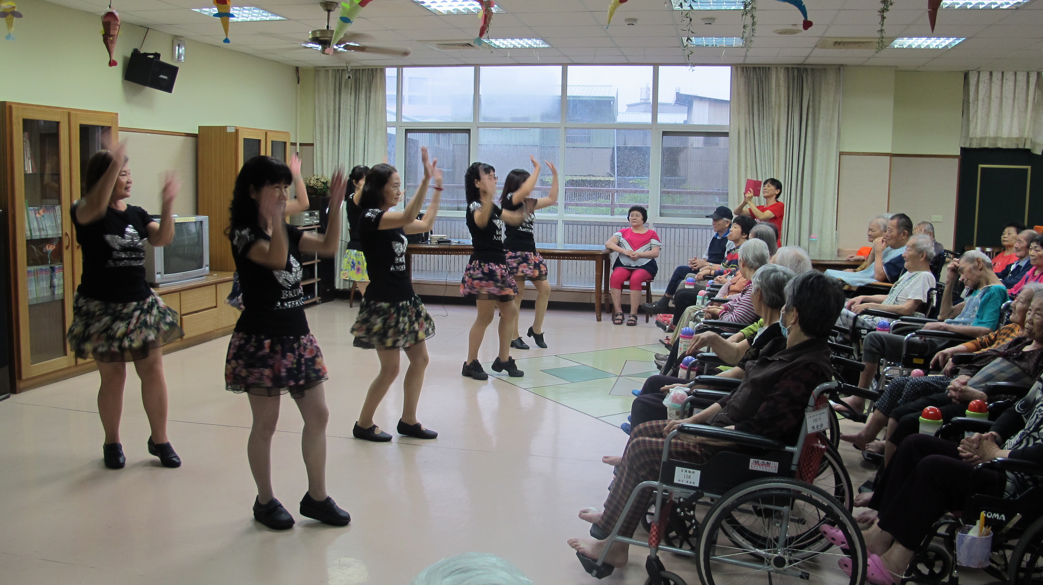 服務項目 活動剪影 志工團體 2017-08-24-青春排舞隊 今天下午特別邀請到青春排舞隊美麗的志工們,來到本家帶給長者們一連串的活動。首先表演了熱情舞蹈,帶長者跳健康操(給你一個機會、真的很愛你、等一下呢、風真透、女人的一生、青春是咱的名),中途有二胡表演了動人的曲目(淡水暮色、白牡丹、補破夢、南都夜曲),表演完也準備了猜謎與長者互動,帶著歡樂的氣氛結束今天特別的活動。 返回