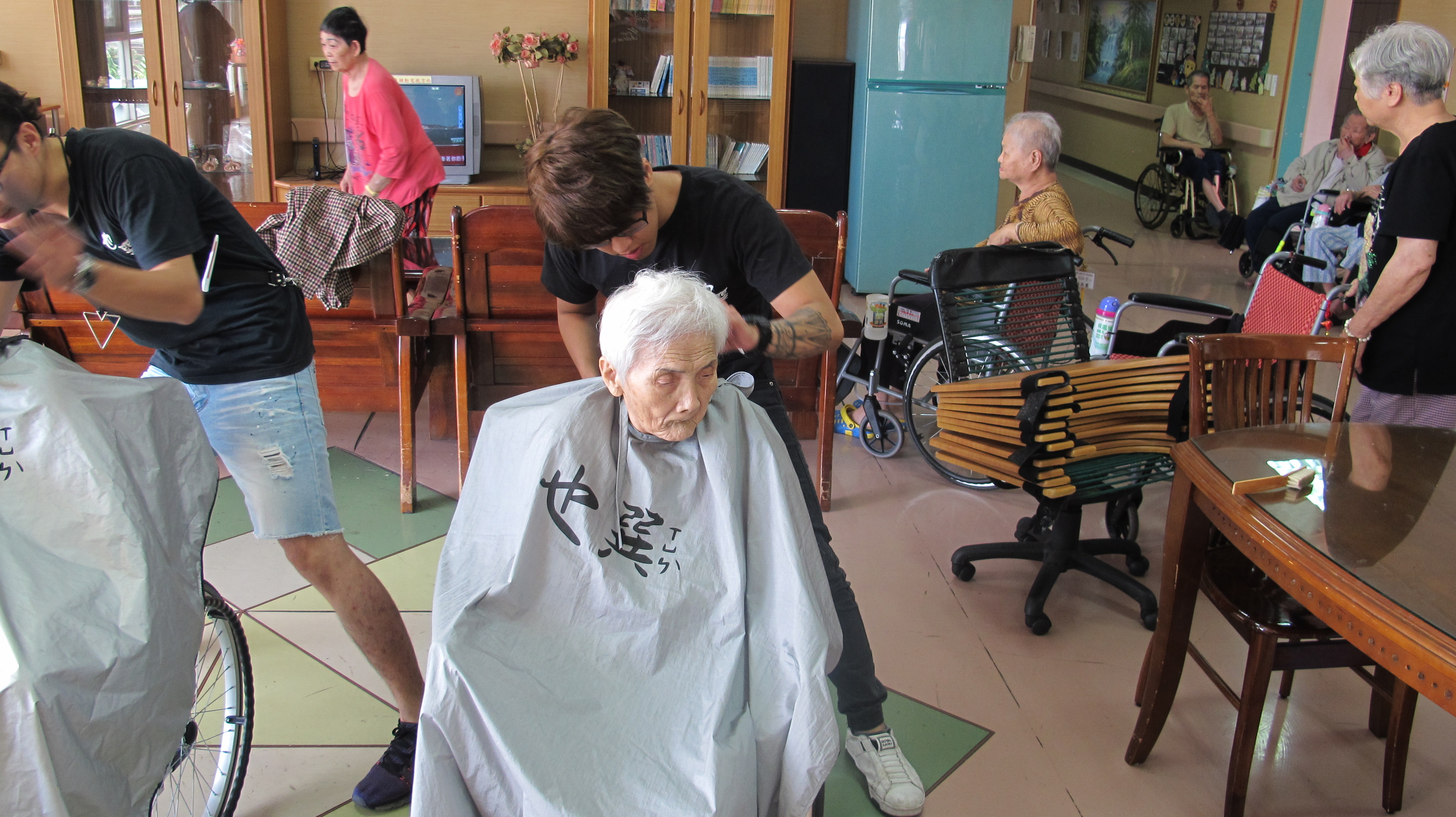 服務項目 活動剪影 志工團體 2017-09-04-也巽義剪 今天特別邀請到也巽造型的設計師們來到本家為長者們整理儀容。設計師們非常細心的幫每位長者修剪頭髮,長者們也十分感謝設計師們的辛勞,最後在歡笑聲中結束了今天的義剪活動。 返回