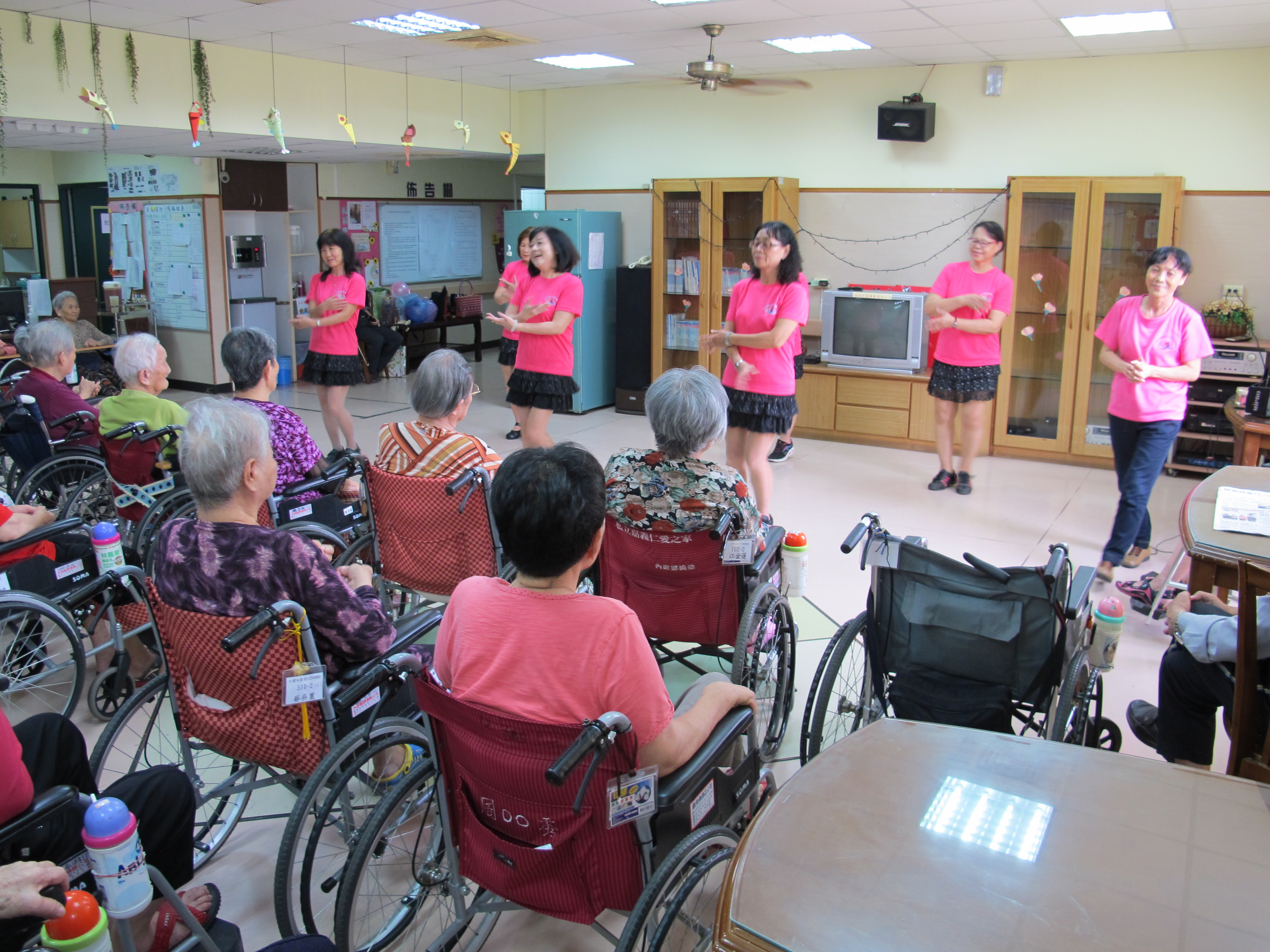 服務項目 活動剪影 志工團體 2017-09-28-青春排舞隊 今天下午特別邀請到青春排舞隊美麗的志工們,來到本家帶給長者們一連串的活動。首先表演了熱情舞蹈,帶長者跳健康操(誘惑、芒果花),中途有二胡表演了動人的曲目(月娘請你聽我說、舞女),表演完也準備了猜謎與長者互動,並且進行打排球的運動,最後帶著歡樂的氣氛結束今天特別的活動。 返回