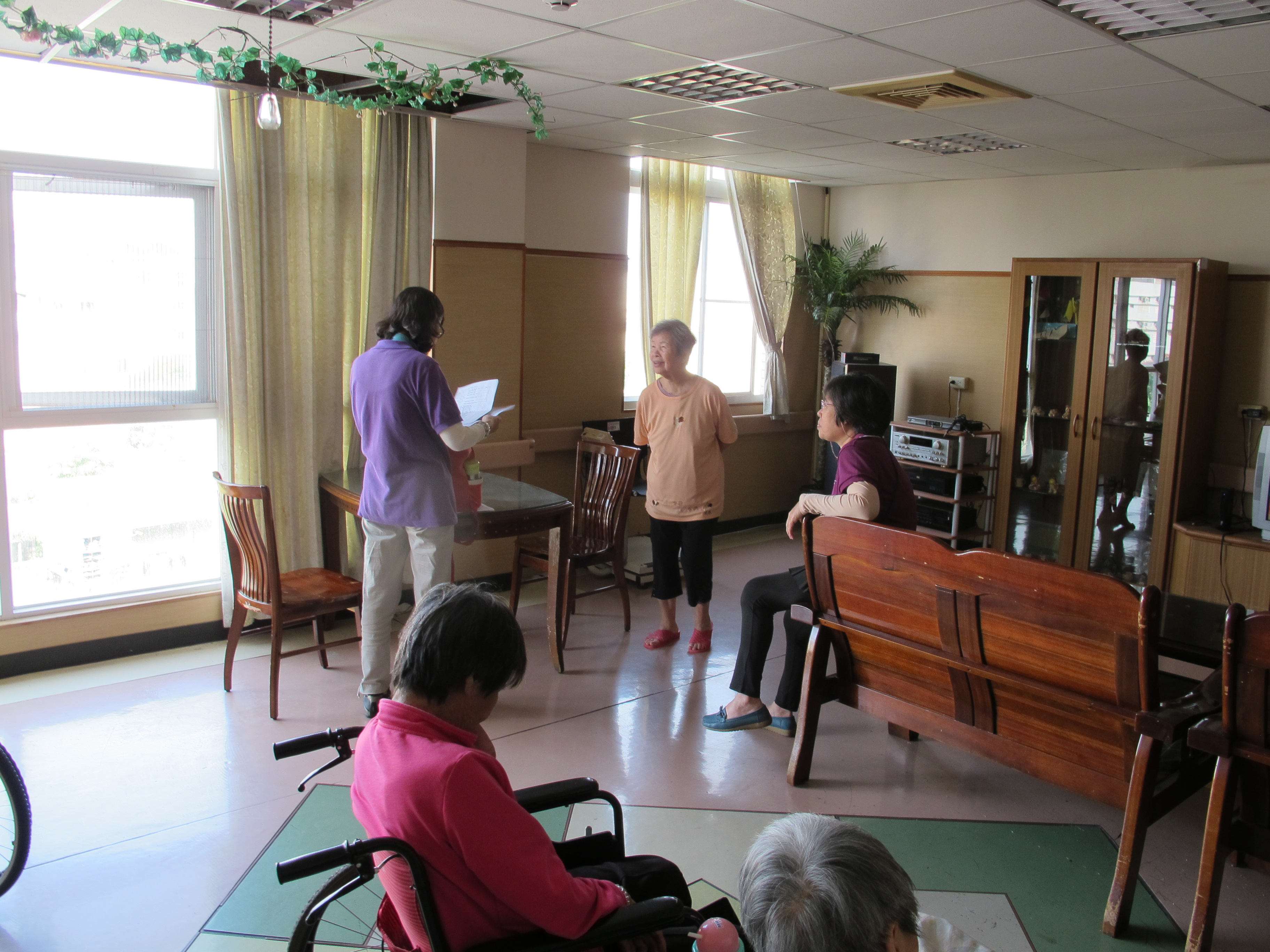 服務項目 活動剪影 志工團體 2017-10-24-信望愛關懷 今天下午的活動由信望愛的三位志工前來本家,依序從一樓至五樓逐一向長者問候、關心身體狀況及聆聽心裡的話,經由志工用心的慰問,了解及紓解長者們心中的情緒,最後為長者們禱告與道別,順利結束這一天溫馨的活動。 返回