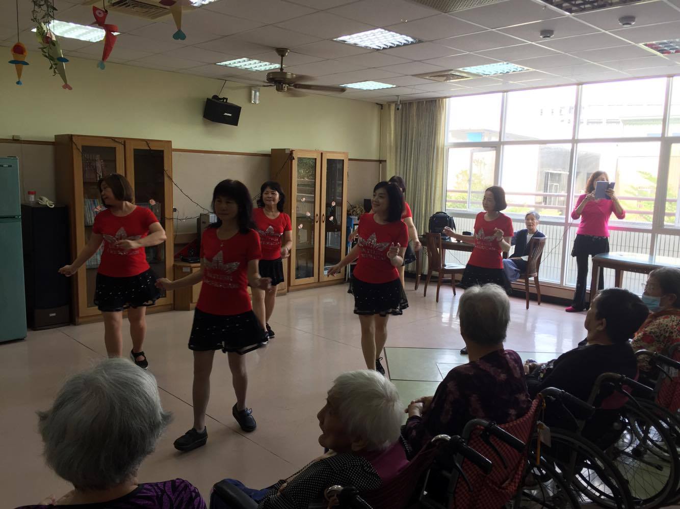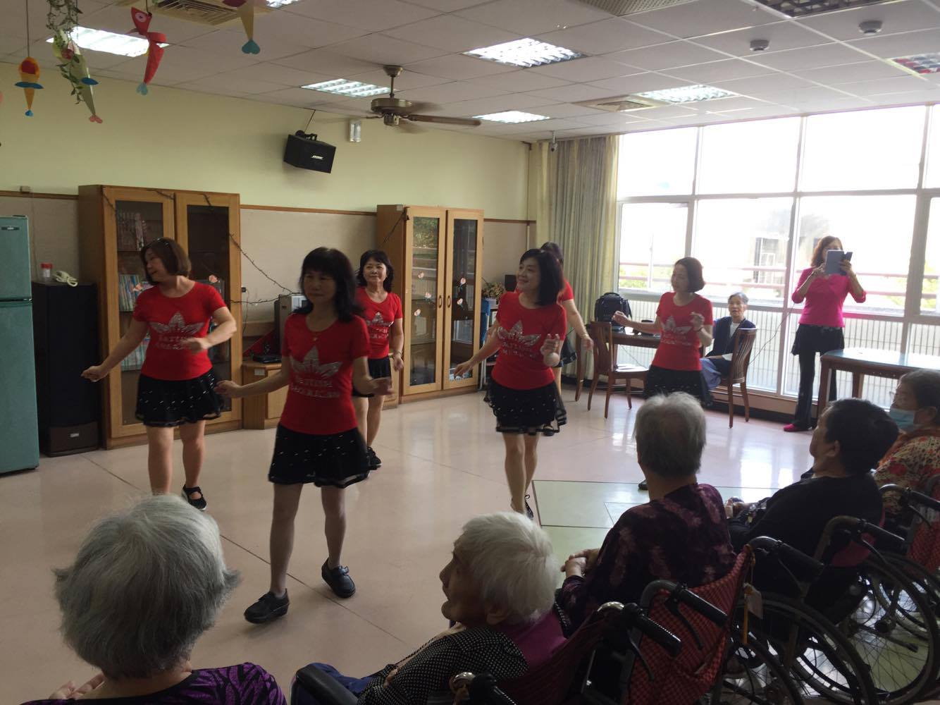 服務項目 活動剪影 志工團體 2017-10-26-青春排舞隊 今天下午特別邀請到青春排舞隊美麗的志工們,來到本家帶給長者們一連串的活動。首先表演了熱情舞蹈,帶長者跳(多情的恰恰、夢中玫瑰),中途有二胡表演了動人的曲目(四季紅、月夜愁、望春風、雨夜花),表演完也準備了一系列的健康操與長者互動,帶著歡樂的氣氛結束今天特別的活動。 返回