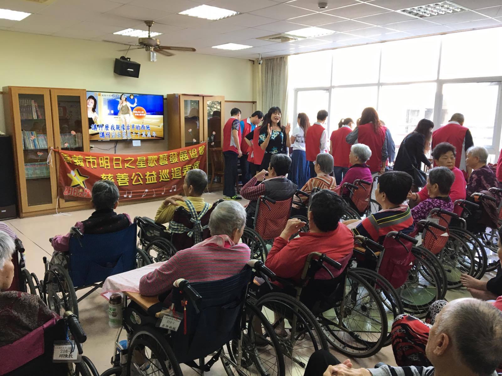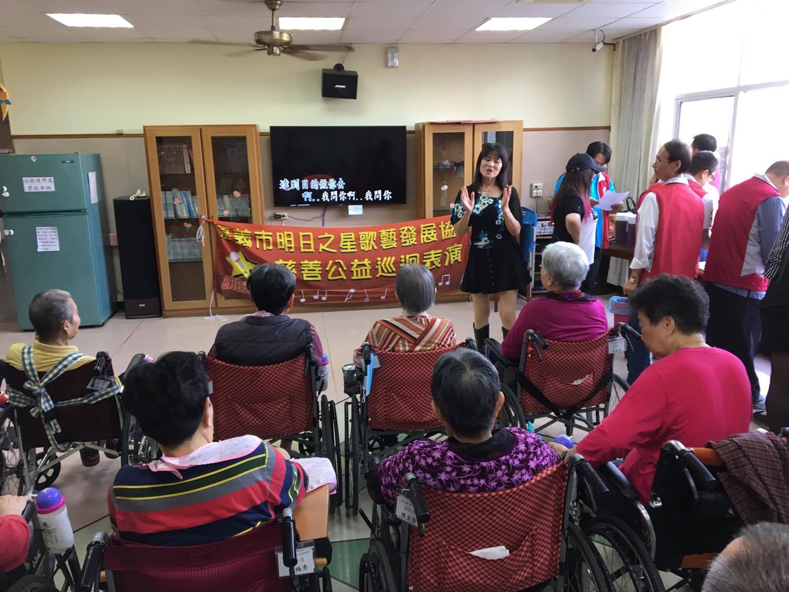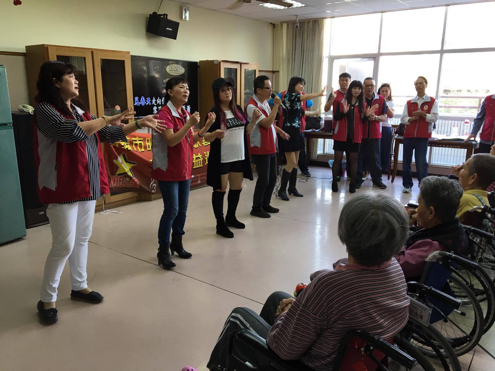 服務項目 活動剪影 志工團體 2017-11-21-明日之星歌藝發展協會 今日非常感謝嘉義市明日之星歌藝發展協會來到本家關懷長者,並表演多首膾炙人口的歌曲(一剪梅、雪中紅、惜別的海岸、無言的結局、愛情的騙子、愛拚才會贏、歌聲戀情、為你打拼、夢中情、今仔日、可愛的馬),讓長者們非常開心津津樂道。 返回
