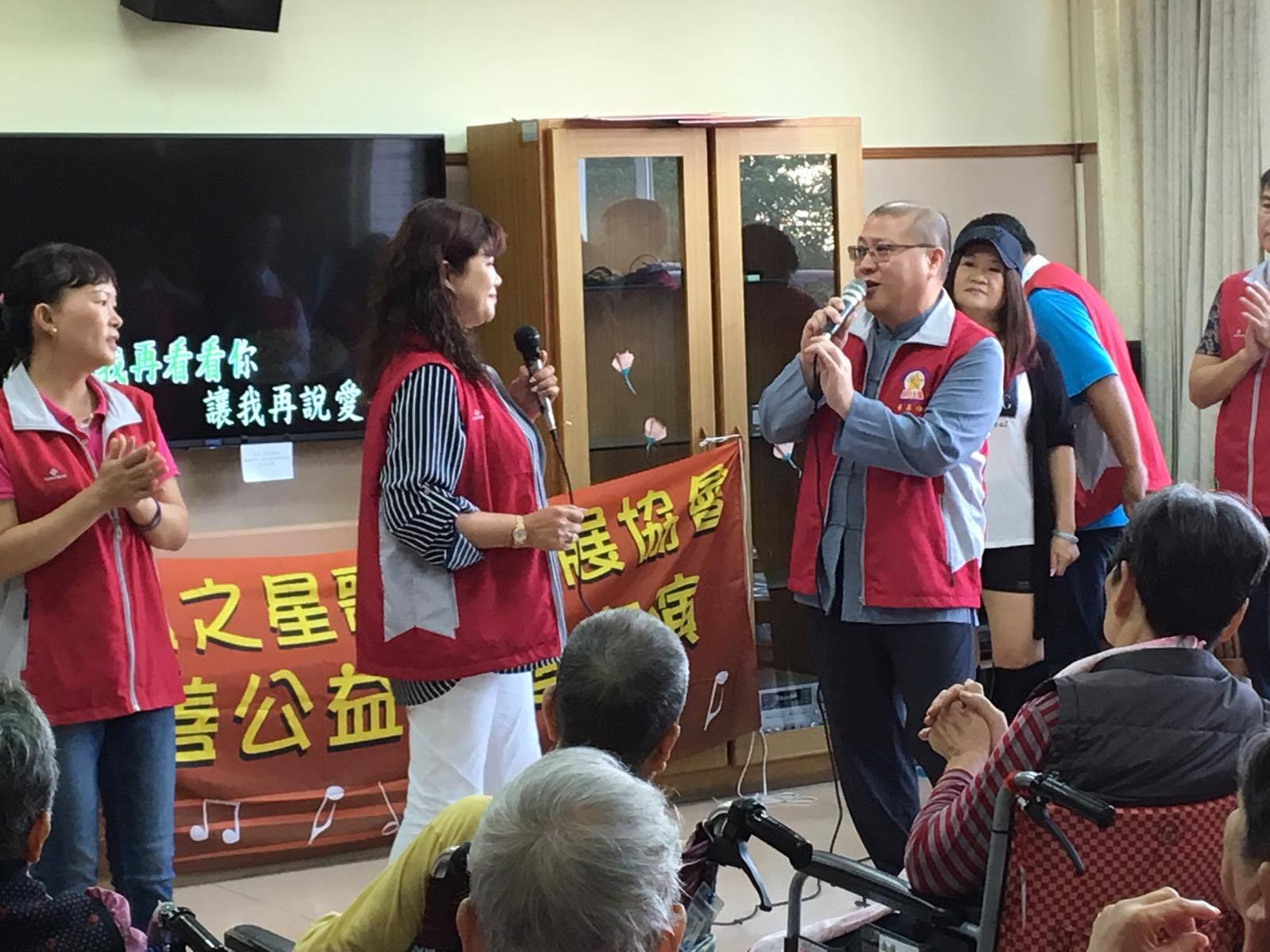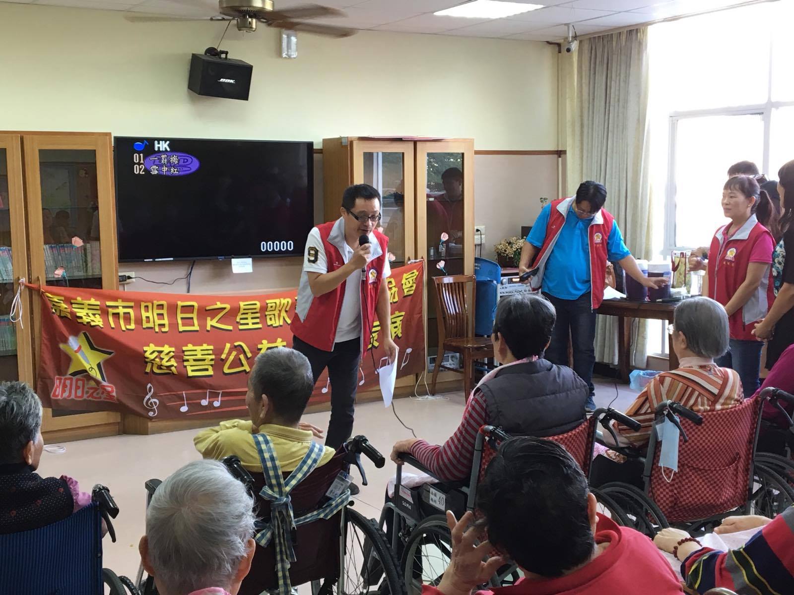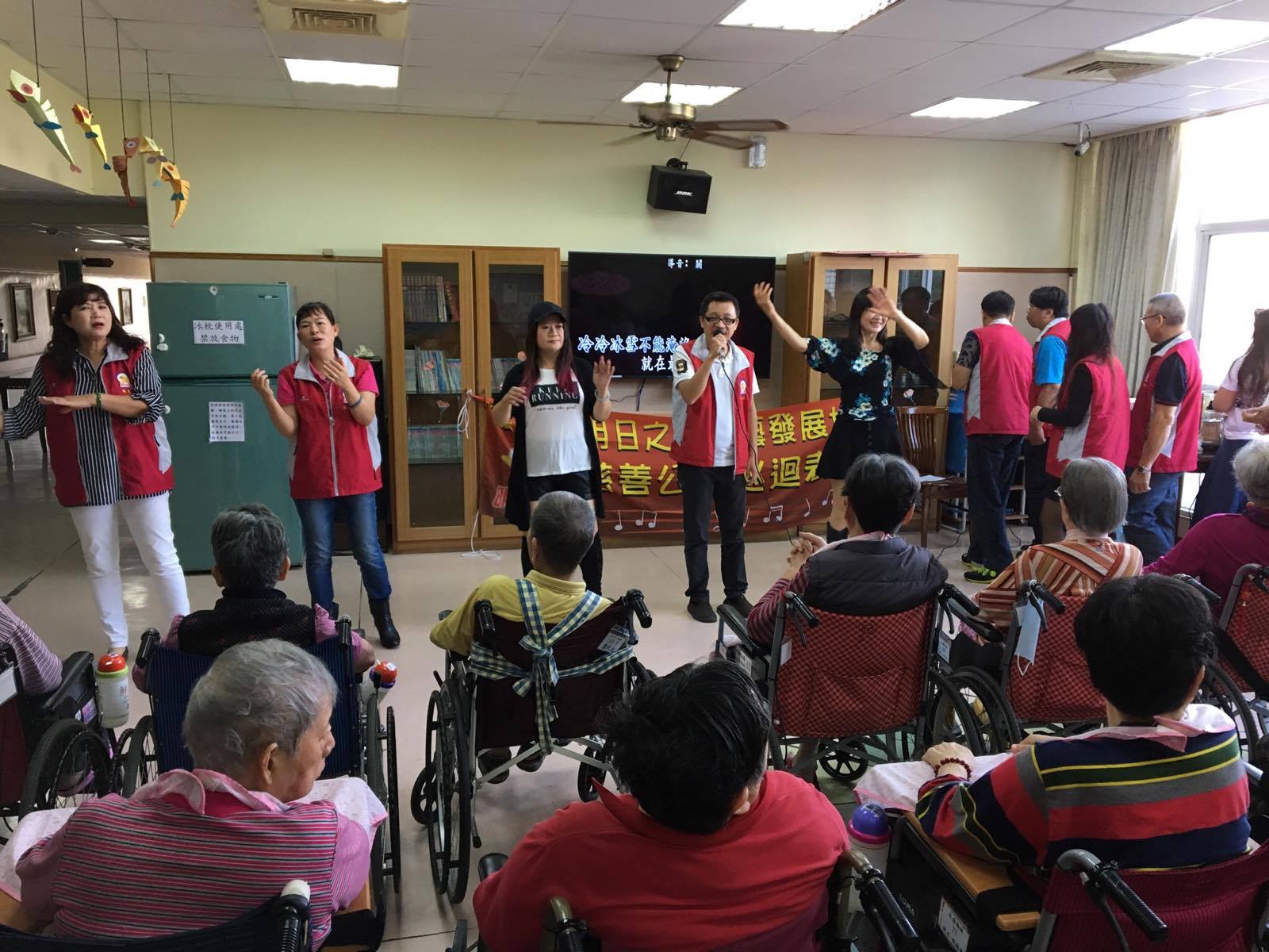 服務項目 活動剪影 志工團體 2017-11-21-明日之星歌藝發展協會 今日非常感謝嘉義市明日之星歌藝發展協會來到本家關懷長者,並表演多首膾炙人口的歌曲(一剪梅、雪中紅、惜別的海岸、無言的結局、愛情的騙子、愛拚才會贏、歌聲戀情、為你打拼、夢中情、今仔日、可愛的馬),讓長者們非常開心津津樂道。 返回
