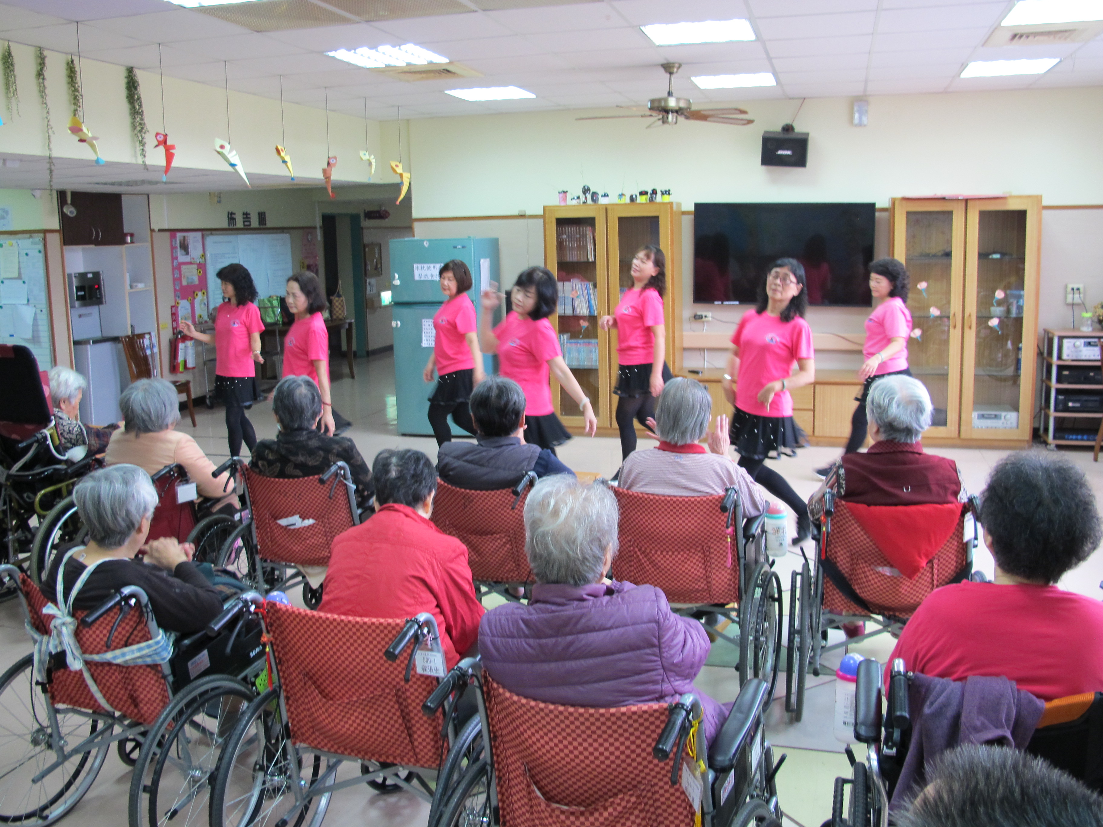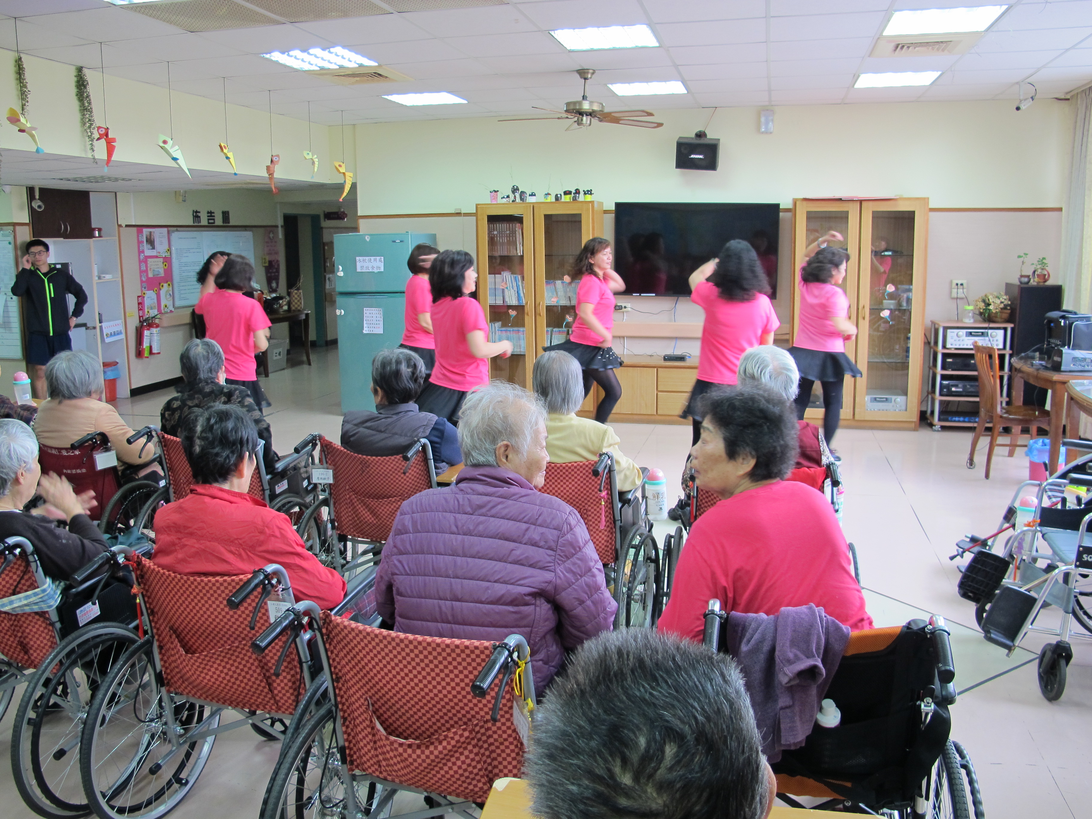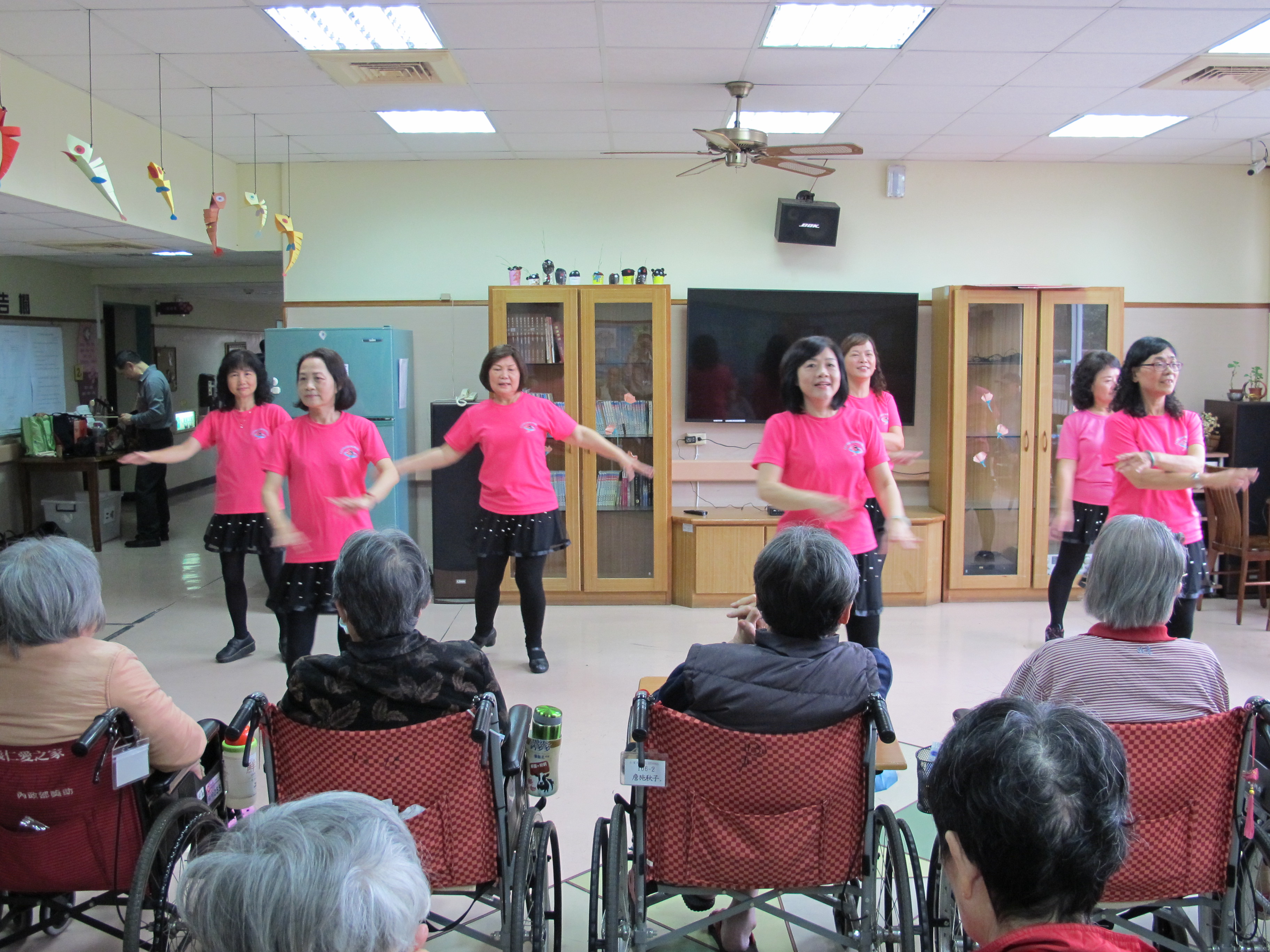 服務項目 活動剪影 志工團體 2017-12-28-青春排舞社 今天下午特別邀請到青春排舞隊美麗的志工們,來到本家帶給長者們一連串的活動。首先表演了熱情舞蹈,帶長者跳(心情歌路、擁抱你離去、思念的海岸、老鷹之歌),中途有二胡表演了動人的曲目,表演完也準備了一系列的遊戲與長者互動,帶著歡樂的氣氛結束今天特別的活動。 返回