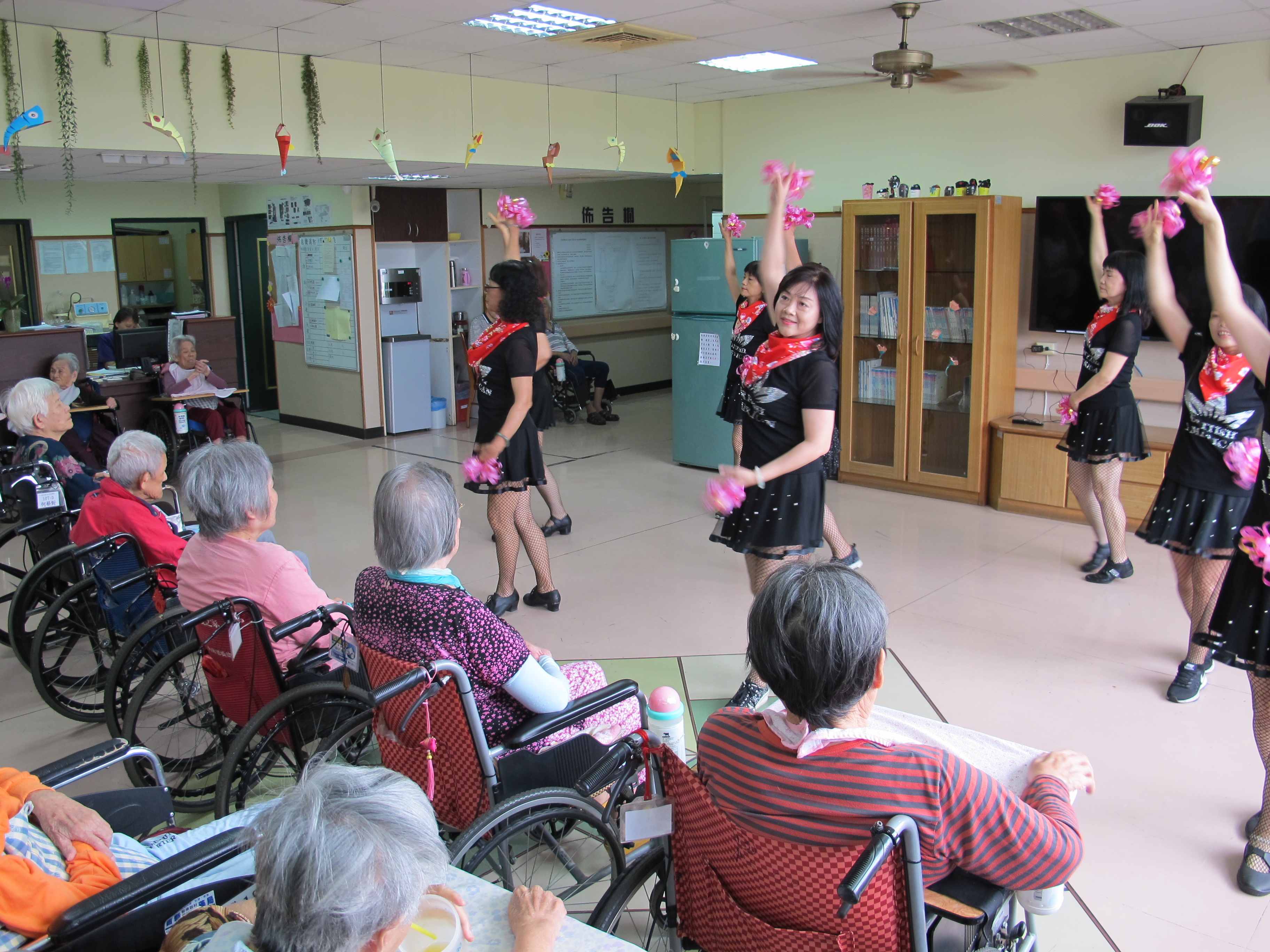 服務項目 活動剪影 志工團體 2018-04-30-青春排舞社 今天下午依然在月底邀請到青春排舞隊美麗的志工們,來到本家帶給長者們一連串的活動。首先表演了熱情舞蹈,帶長者一起跳舞,中途有二胡表演了動人的曲目,表演完也準備了一系列的遊戲與長者互動,帶著歡樂的氣氛結束今天特別的活動。 返回