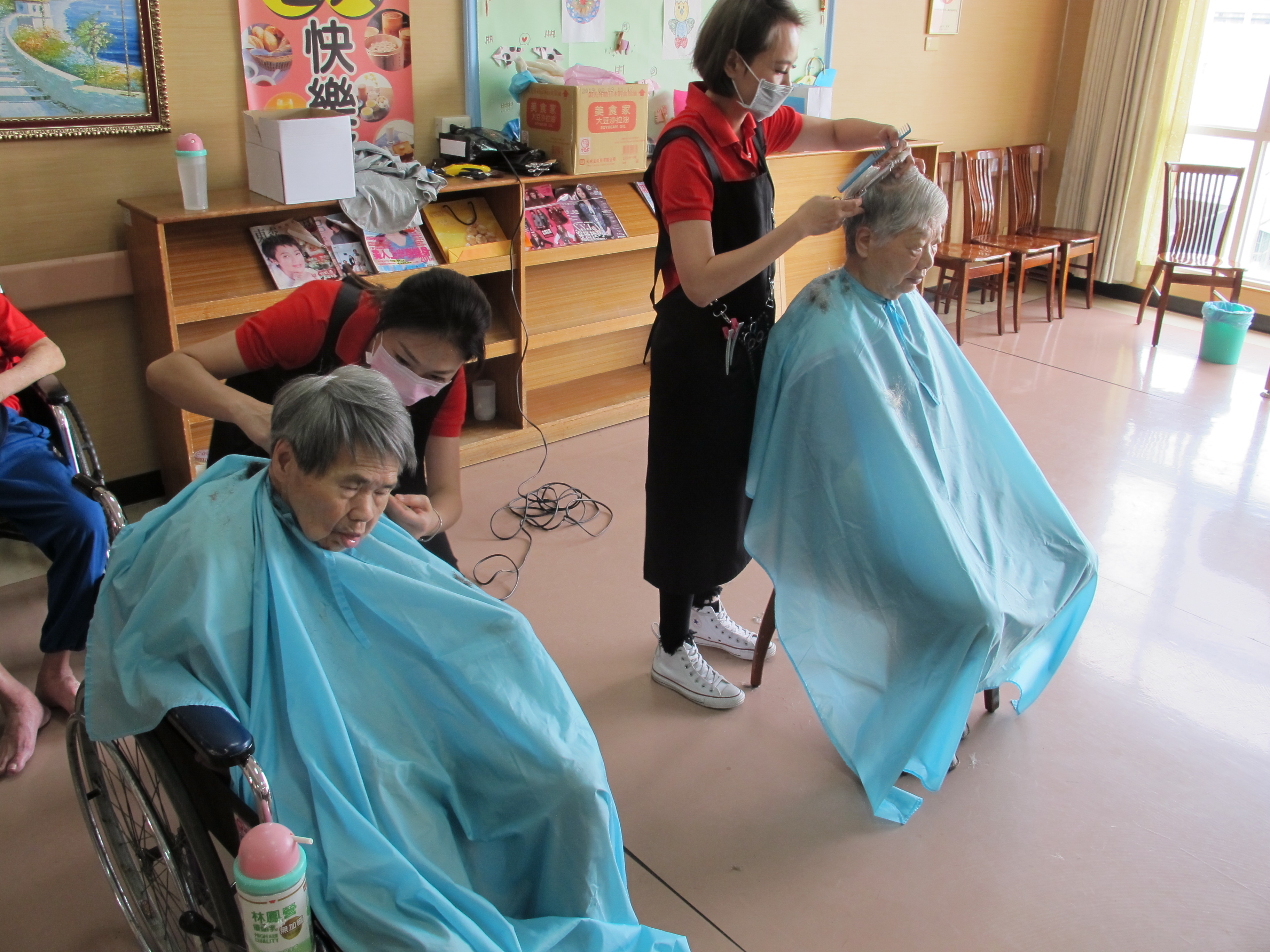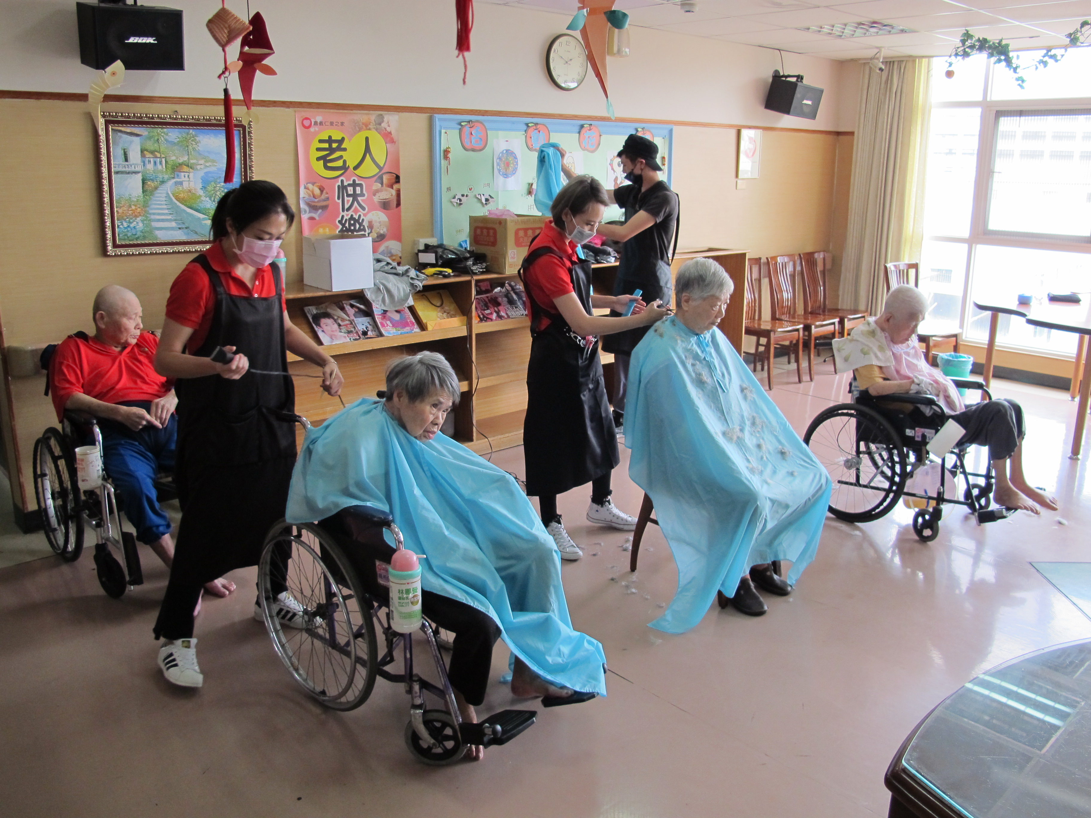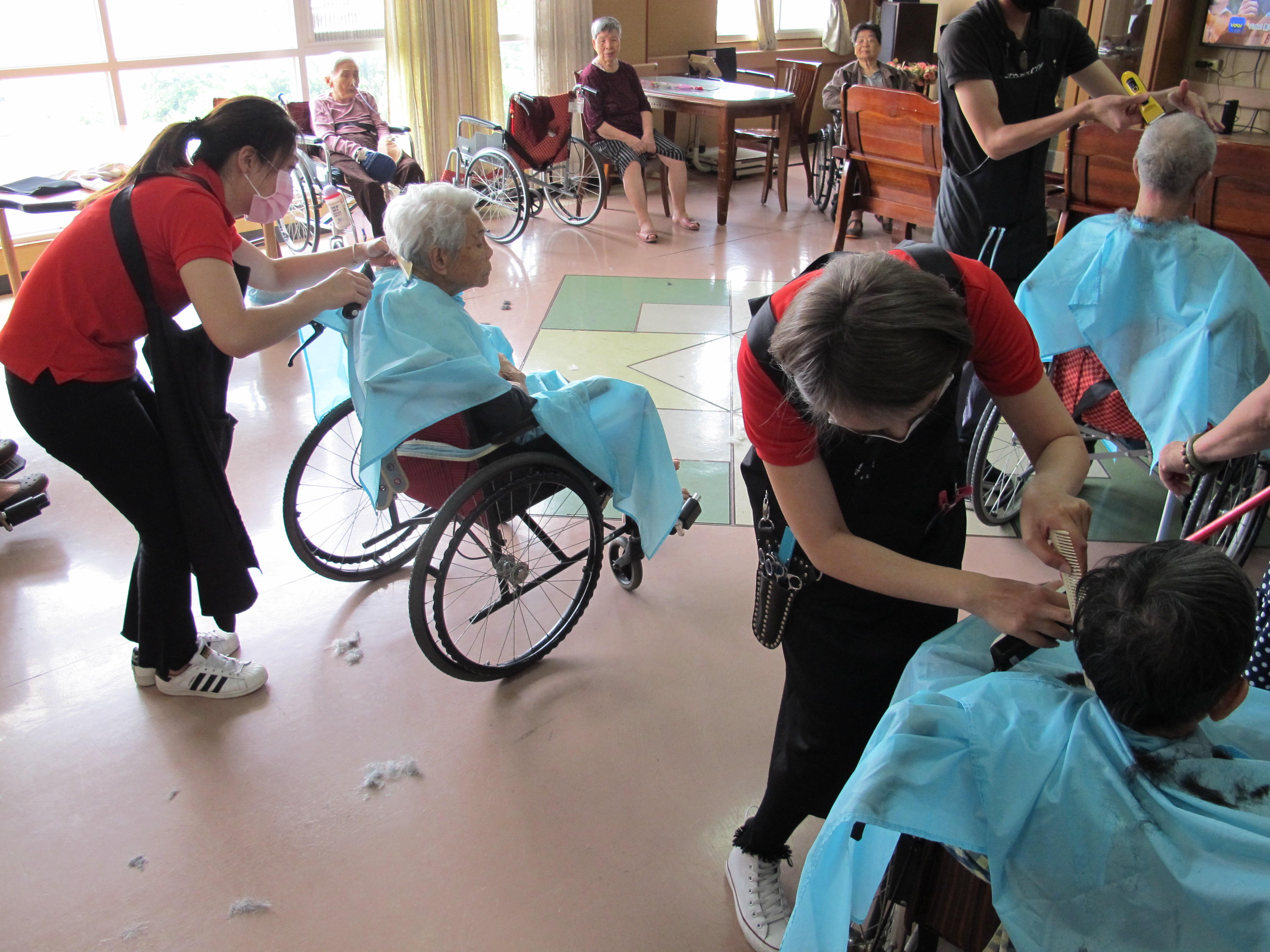 服務項目 活動剪影 志工團體 2018-05-07 也巽義剪 今天特別邀請到也巽造型的設計師們來到本家為長者們整理儀容。設計師們非常細心的幫每位長者修剪頭髮,長者們也十分感謝設計師們的辛勞,最後在歡笑聲中結束了今天的義剪活動。 返回