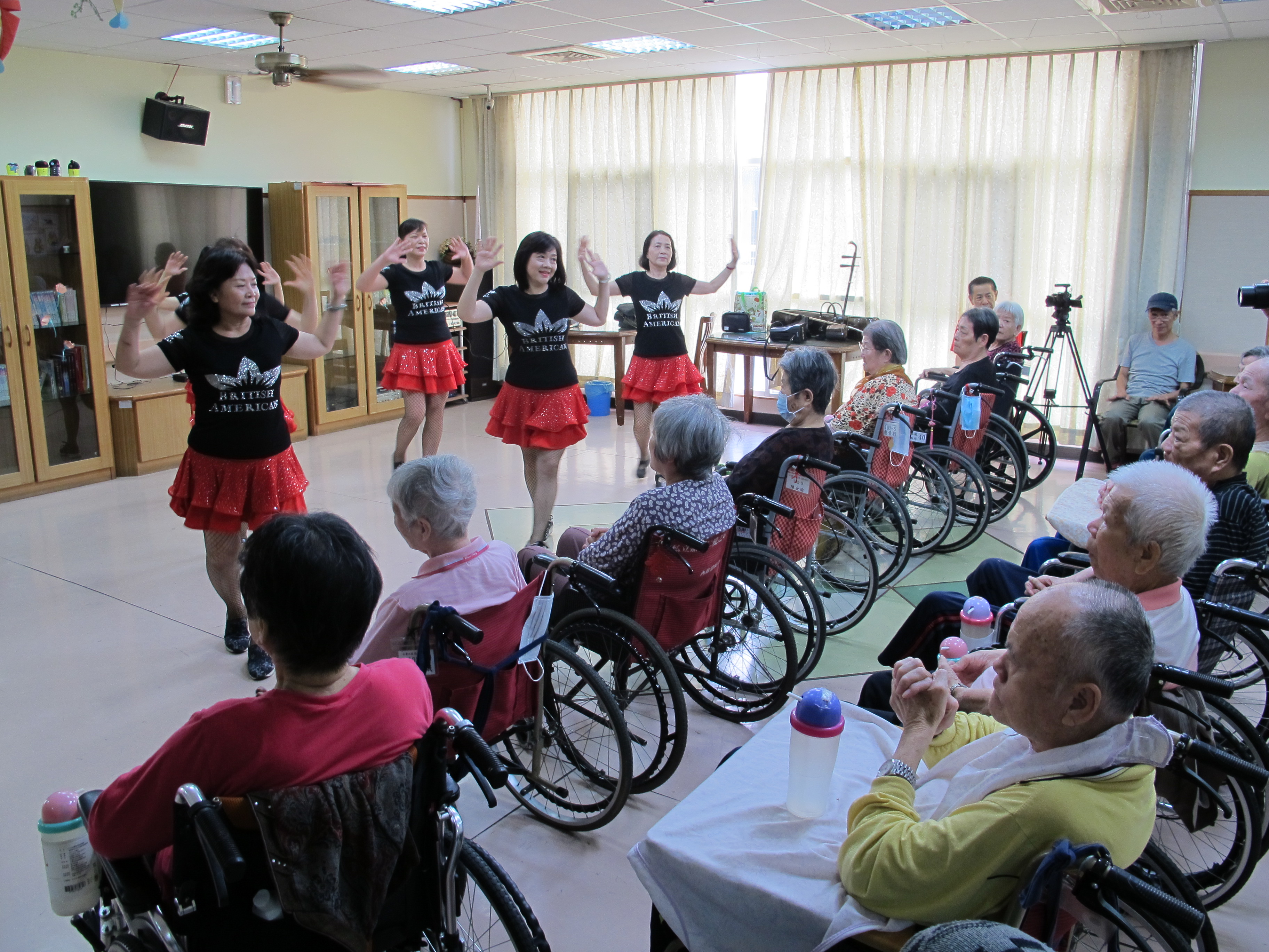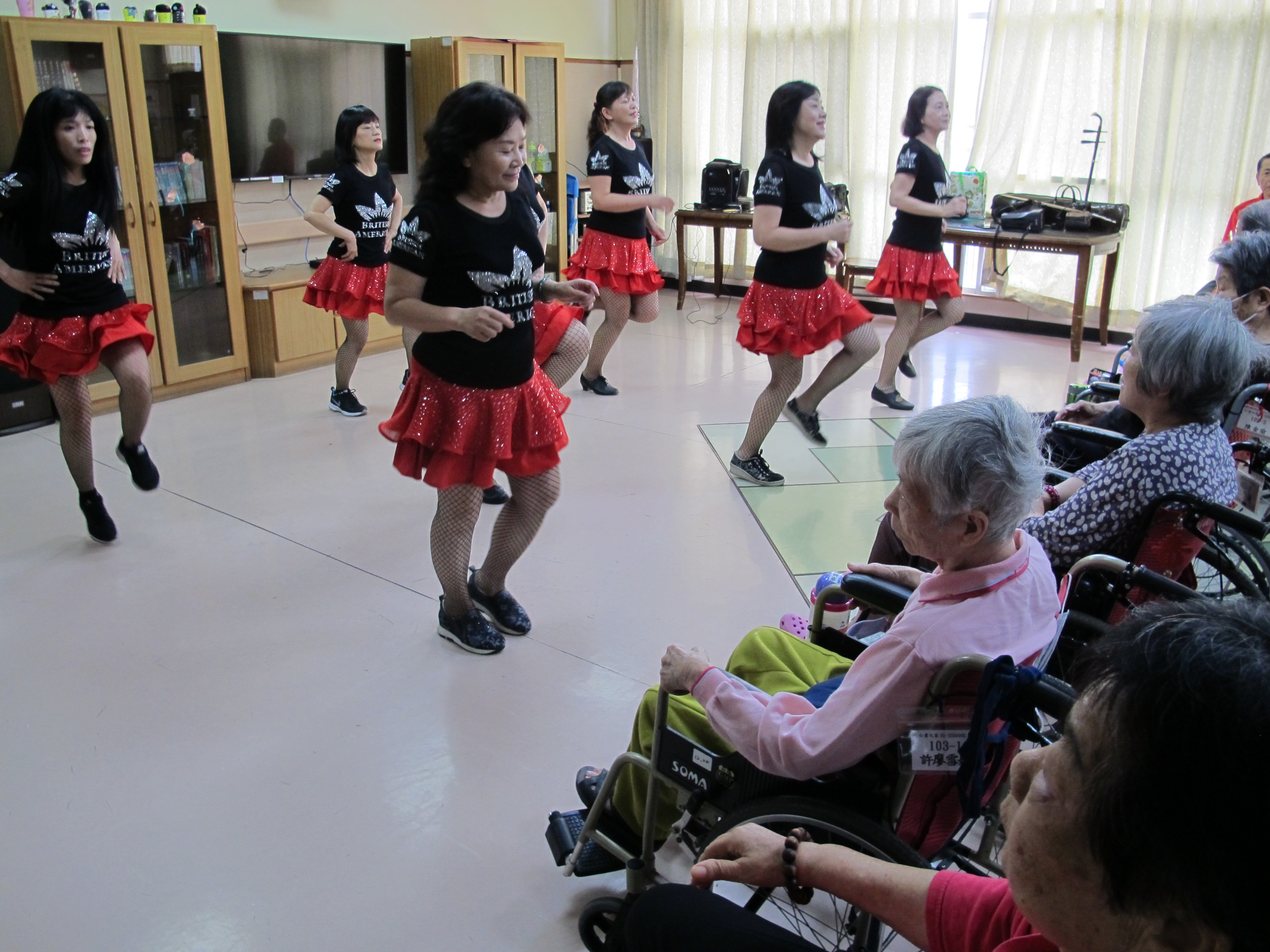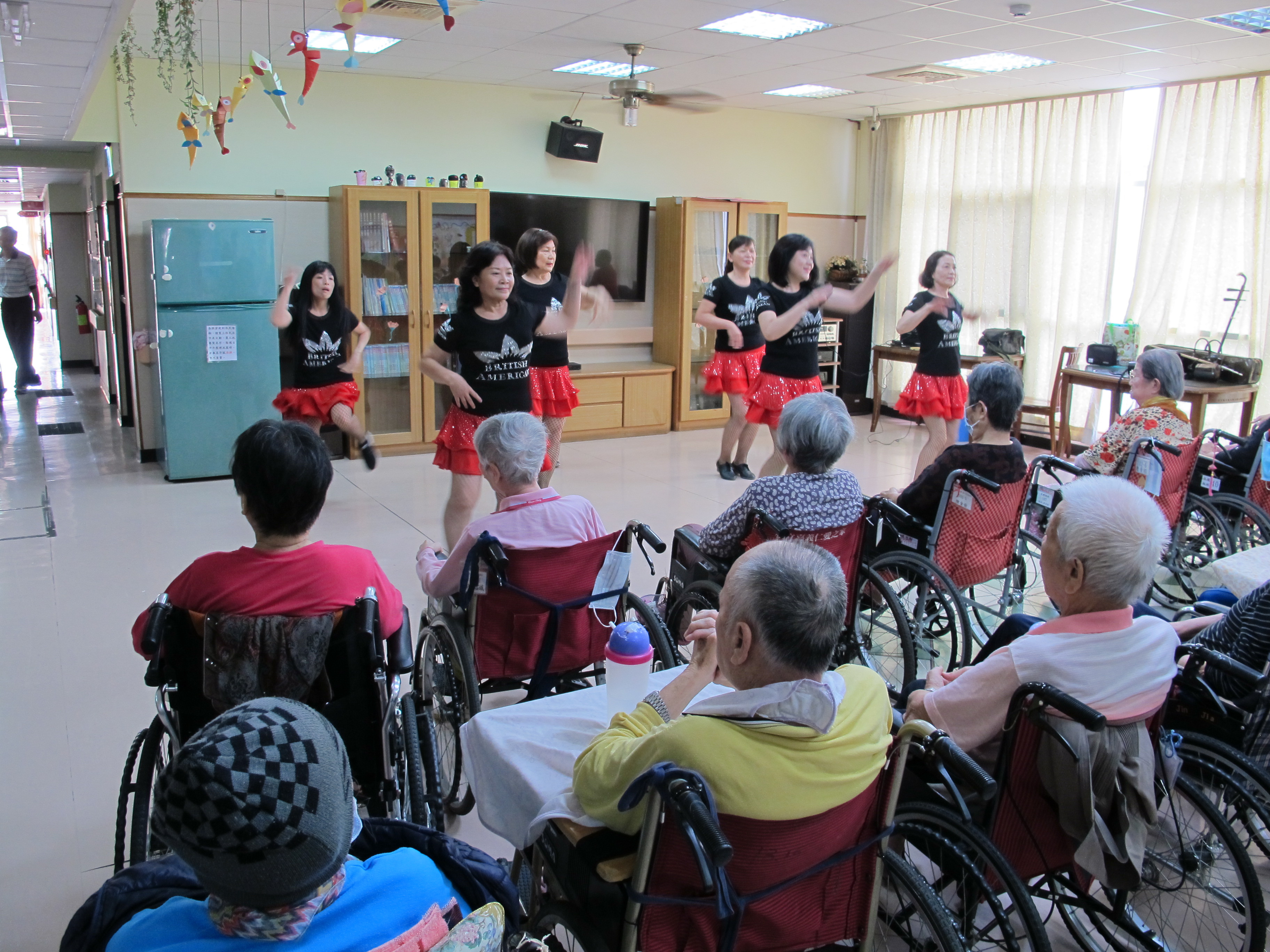 服務項目 活動剪影 志工團體 2018-05-29-青春排舞社 今天下午依然在月底邀請到青春排舞隊美麗的志工們,來到本家帶給長者們一連串的活動。首先表演了熱情舞蹈,帶長者一起跳舞,中途有二胡表演了動人的曲目,表演完也準備了一系列的遊戲與長者互動,帶著歡樂的氣氛結束今天特別的活動。 返回