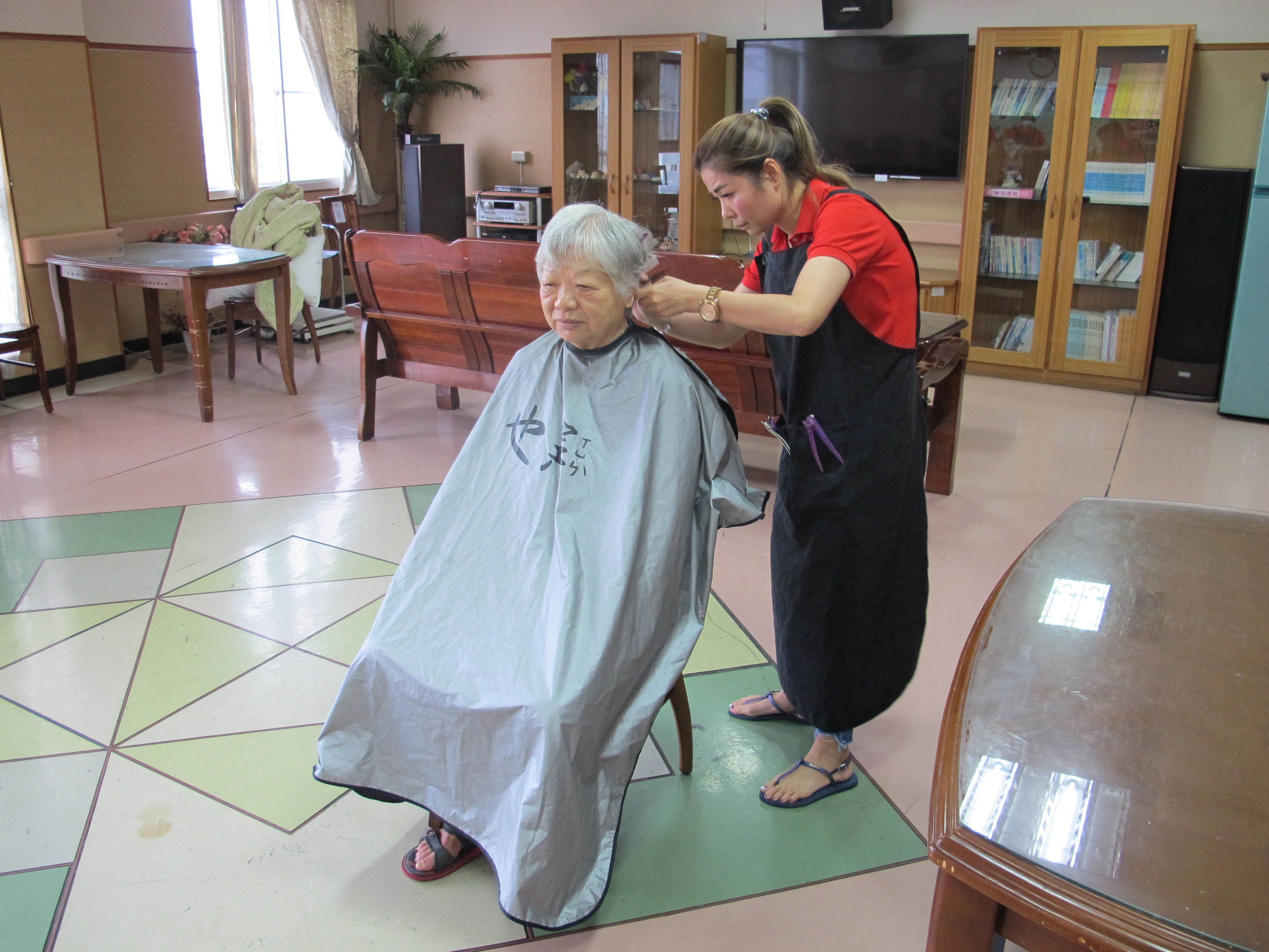 服務項目 活動剪影 志工團體 2018-07-02-也巽義剪 今天特別邀請到也巽造型的設計師們來到本家為長者們整理儀容。設計師們非常細心的幫每位長者修剪頭髮,長者們也十分感謝設計師們的辛勞,最後在歡笑聲中結束了今天的義剪活動。 返回