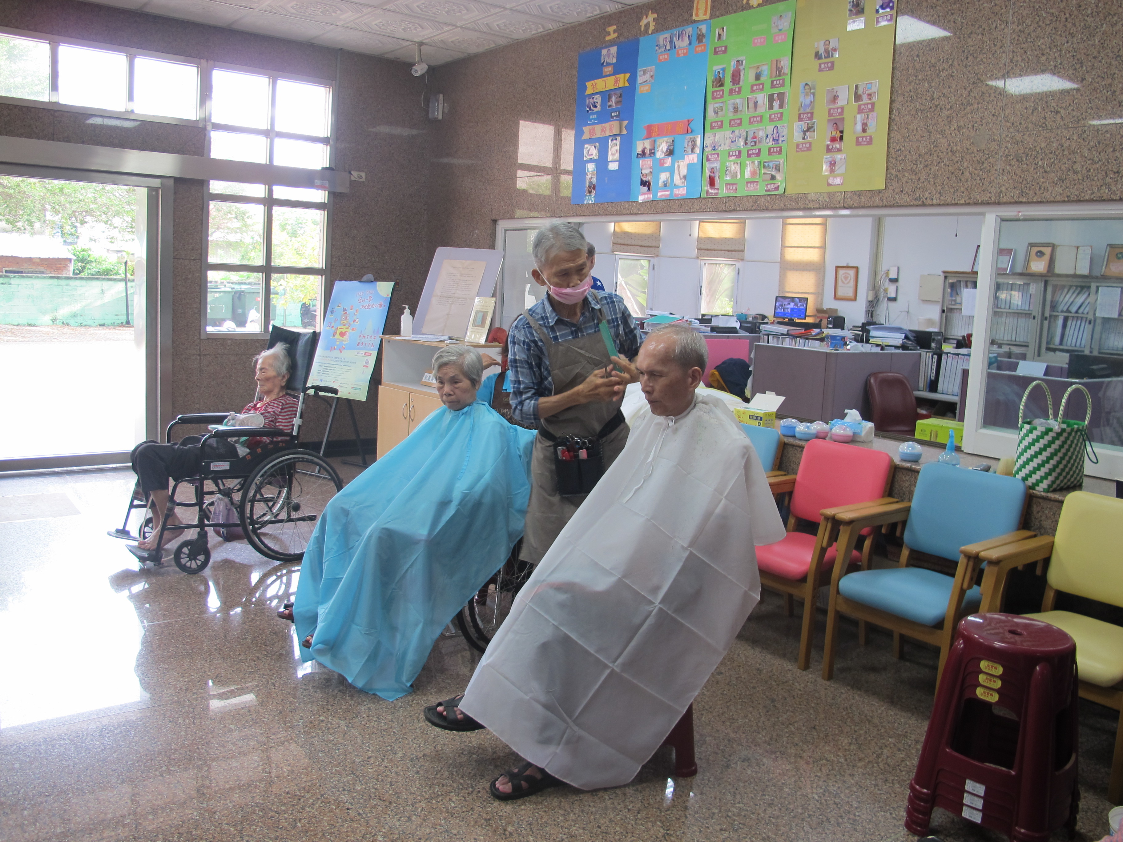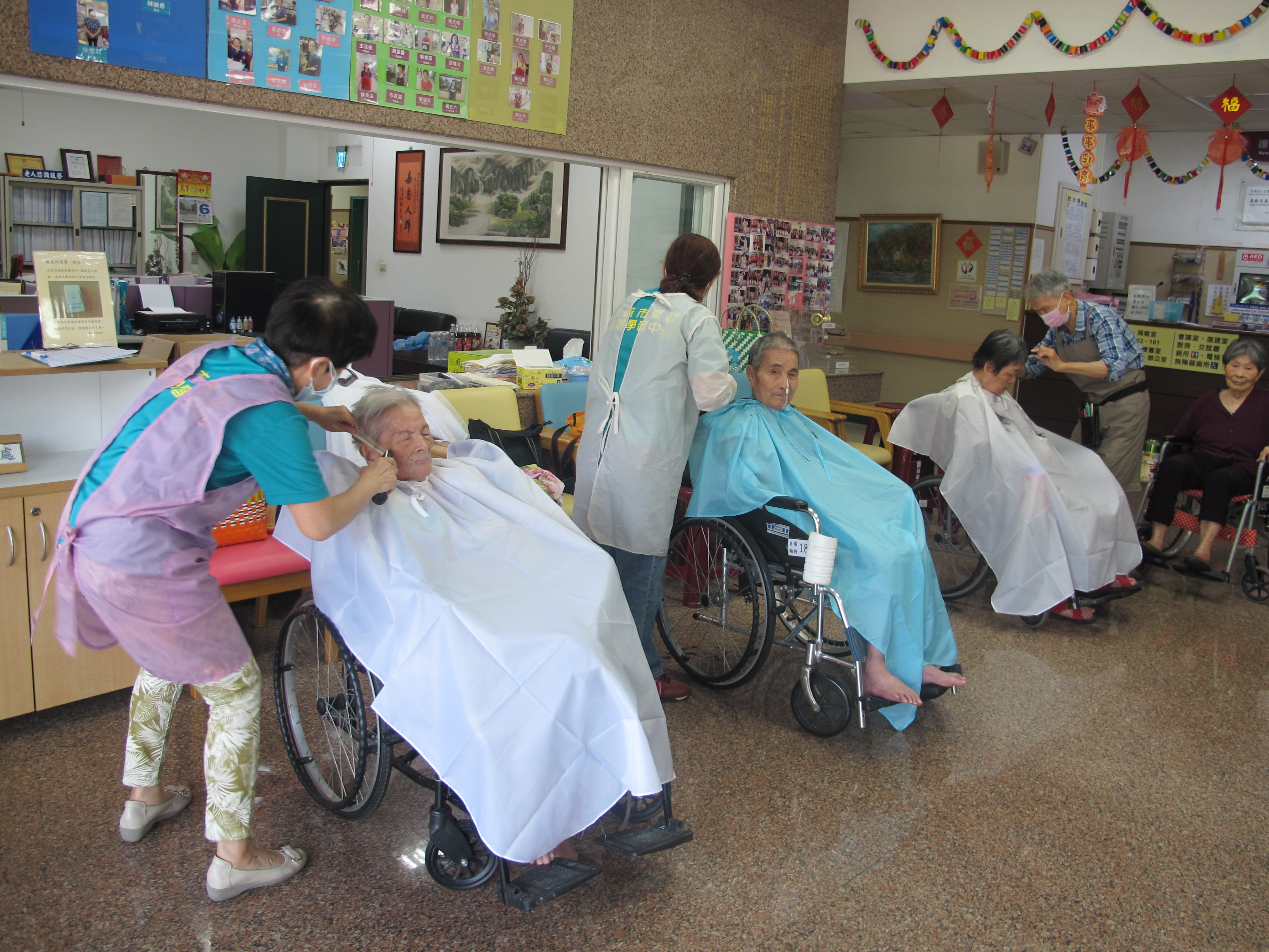 今天上午很開心由嘉義社區大學的志工依樓層為我們長輩剪頭髮,讓我們的長輩煥然一新的迎向新的一年.