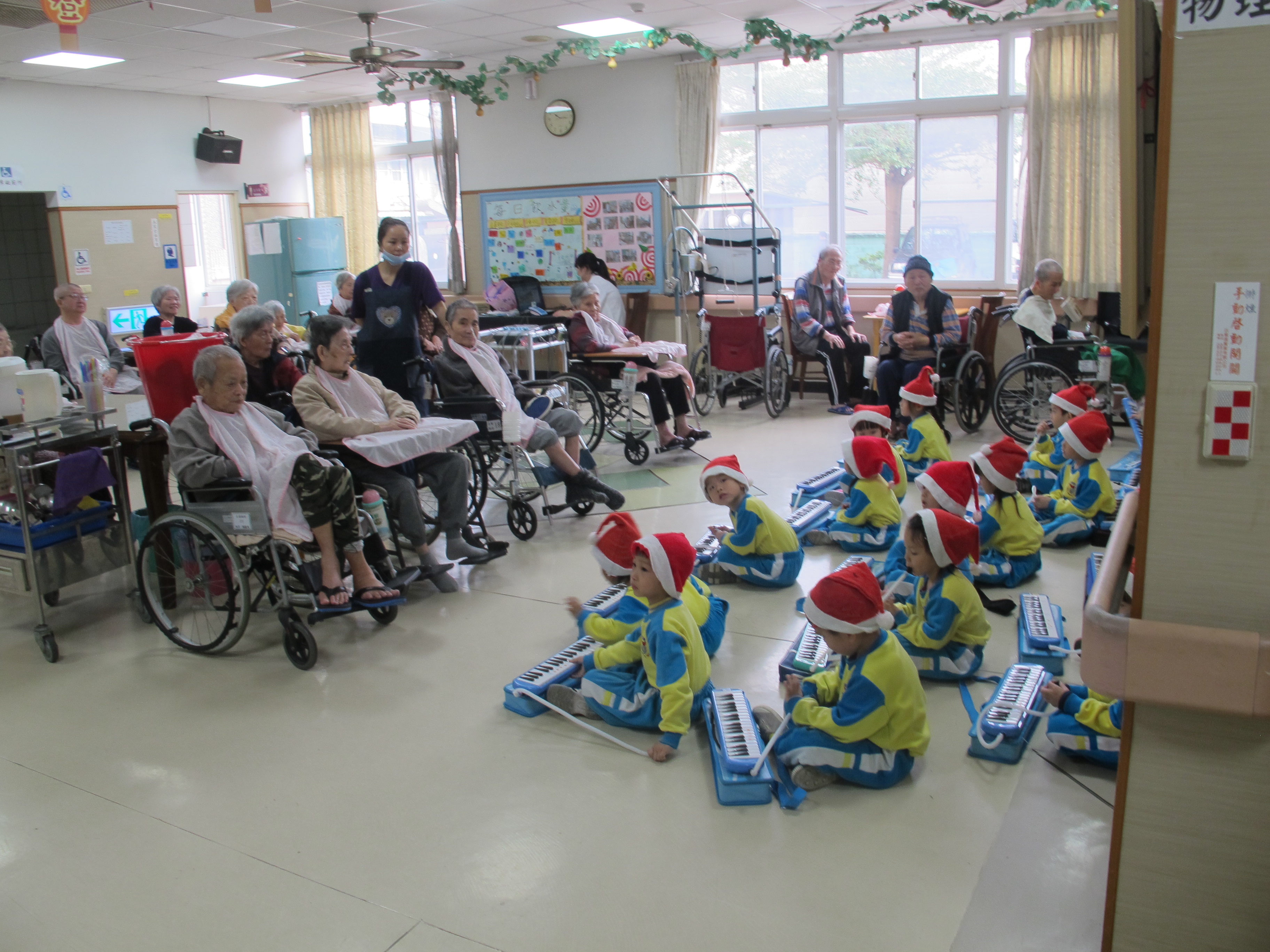 服務項目 活動剪影 志工團體 2019-12-24中正幼兒園聖誕節報佳音 今天早上可愛的中正幼兒園小朋友們給長輩們聖誕節報佳音,帶來有趣的舞蹈表演與好聽的口風琴演奏,讓阿公阿嬤們有個愉快又難忘的聖誕節。 返回