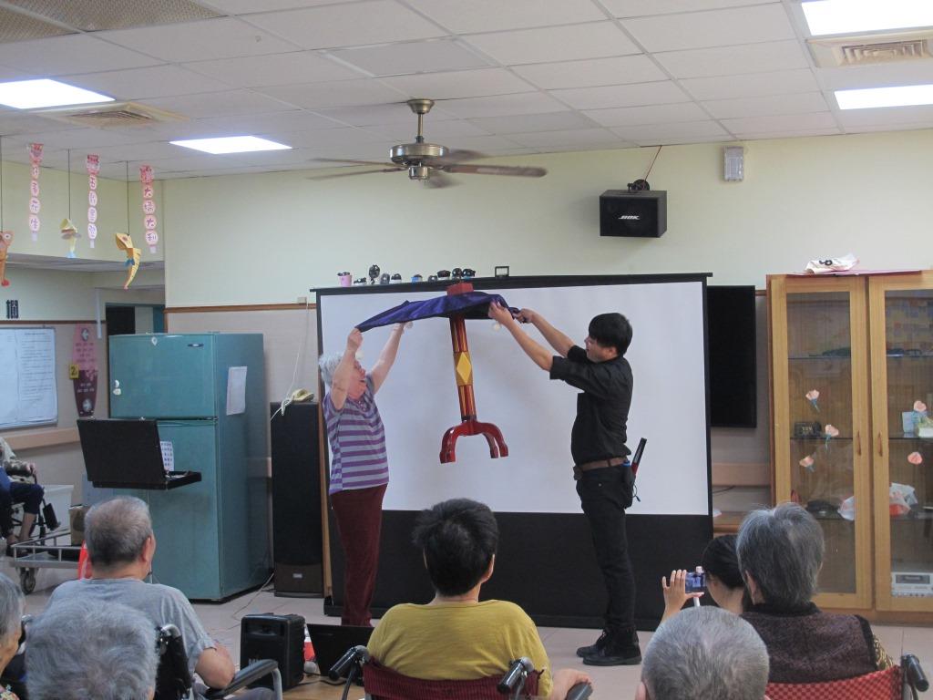 服務項目 活動剪影 志工團體 2020-09-09何歡劇團巡迴義演 精彩極了! 今日下午非常難得邀請到何歡劇團的鄭魔術師前來表演,數不清的鴿子、一張變兩張紙鈔、剪不斷的繩子和希望起飛的飛桌魔術,長輩們看得目不轉睛,拍手叫好,嘖嘖稱奇,給長輩們充滿歡樂與驚奇的午後時光。 返回