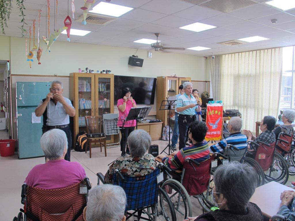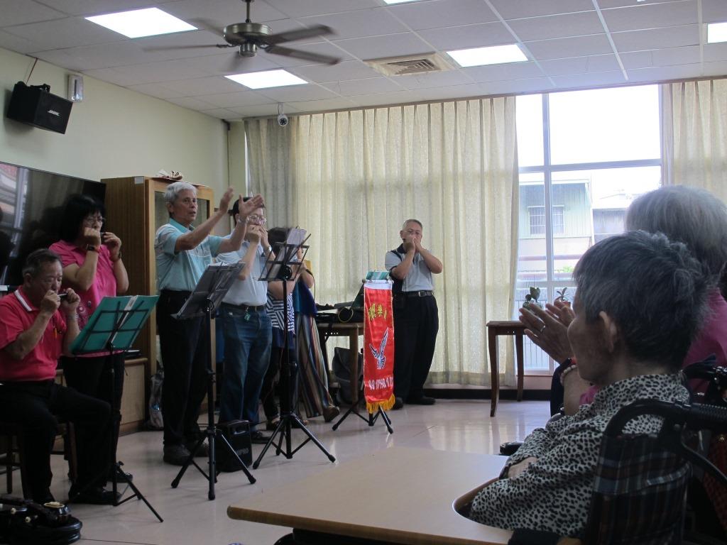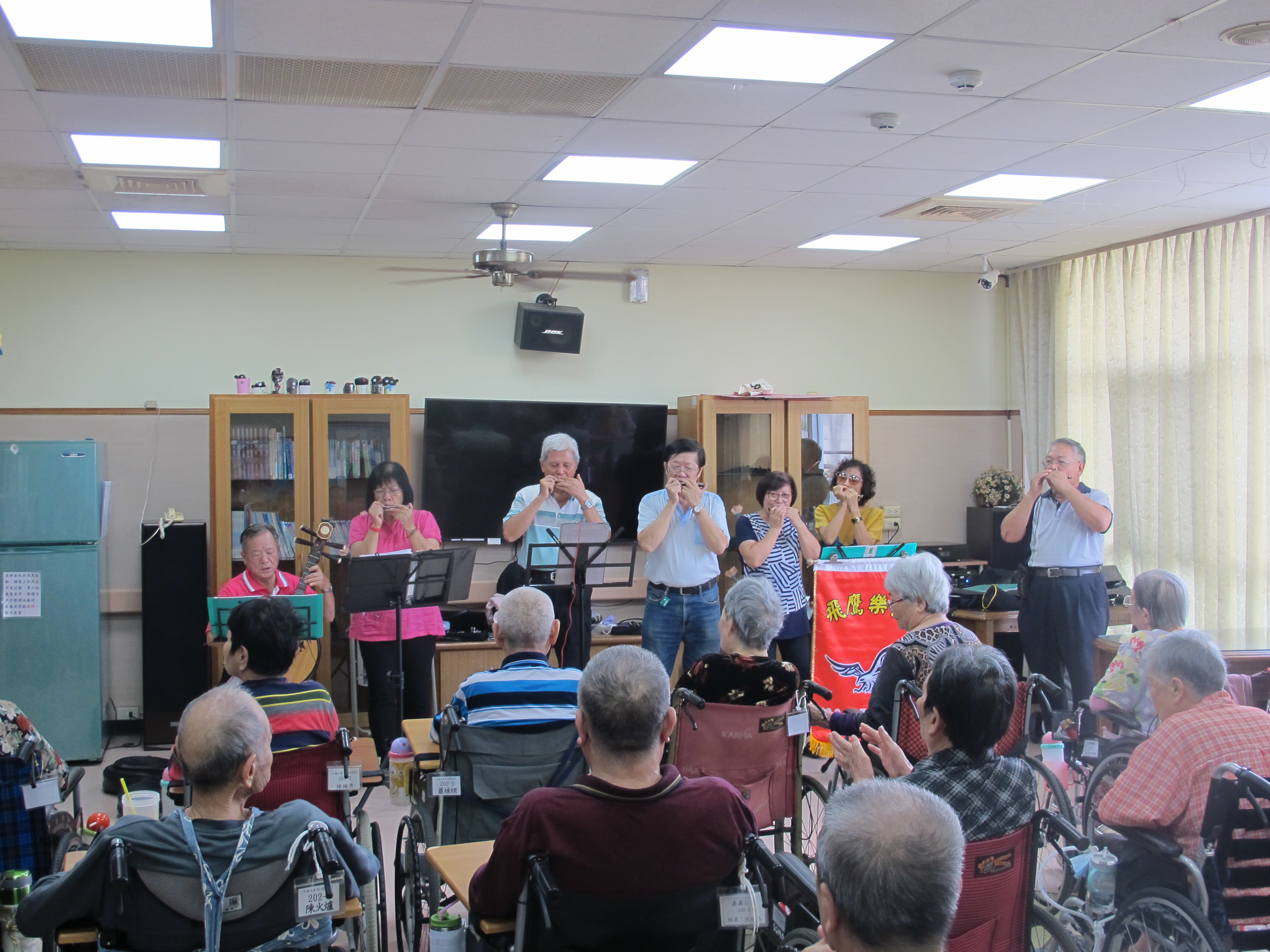 服務項目 活動剪影 志工團體 2020-09-16飛鷹樂團義演 今天下午飛鷹樂團第一次來到仁愛之家進行義演,用口琴表演許多首台語、日語經典老歌,長輩們聽得不亦樂乎,跟著打節拍和唱歌,高興的不得了,有個愉快的午後時光。 返回