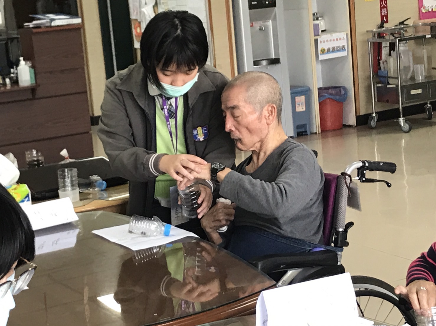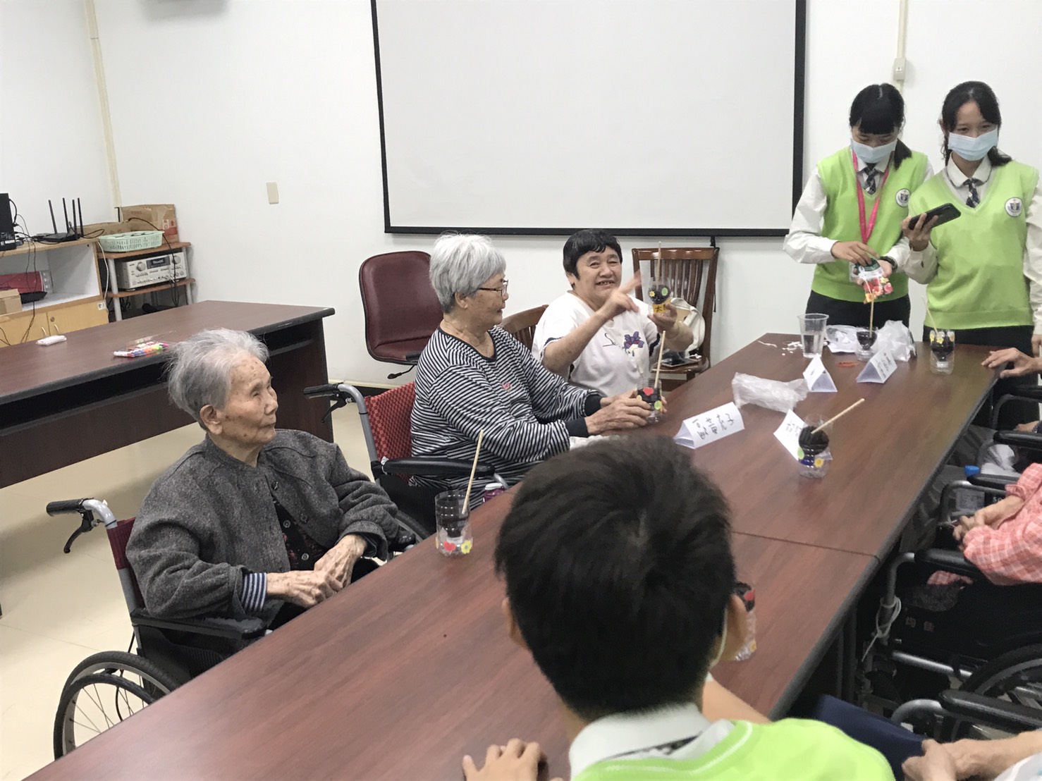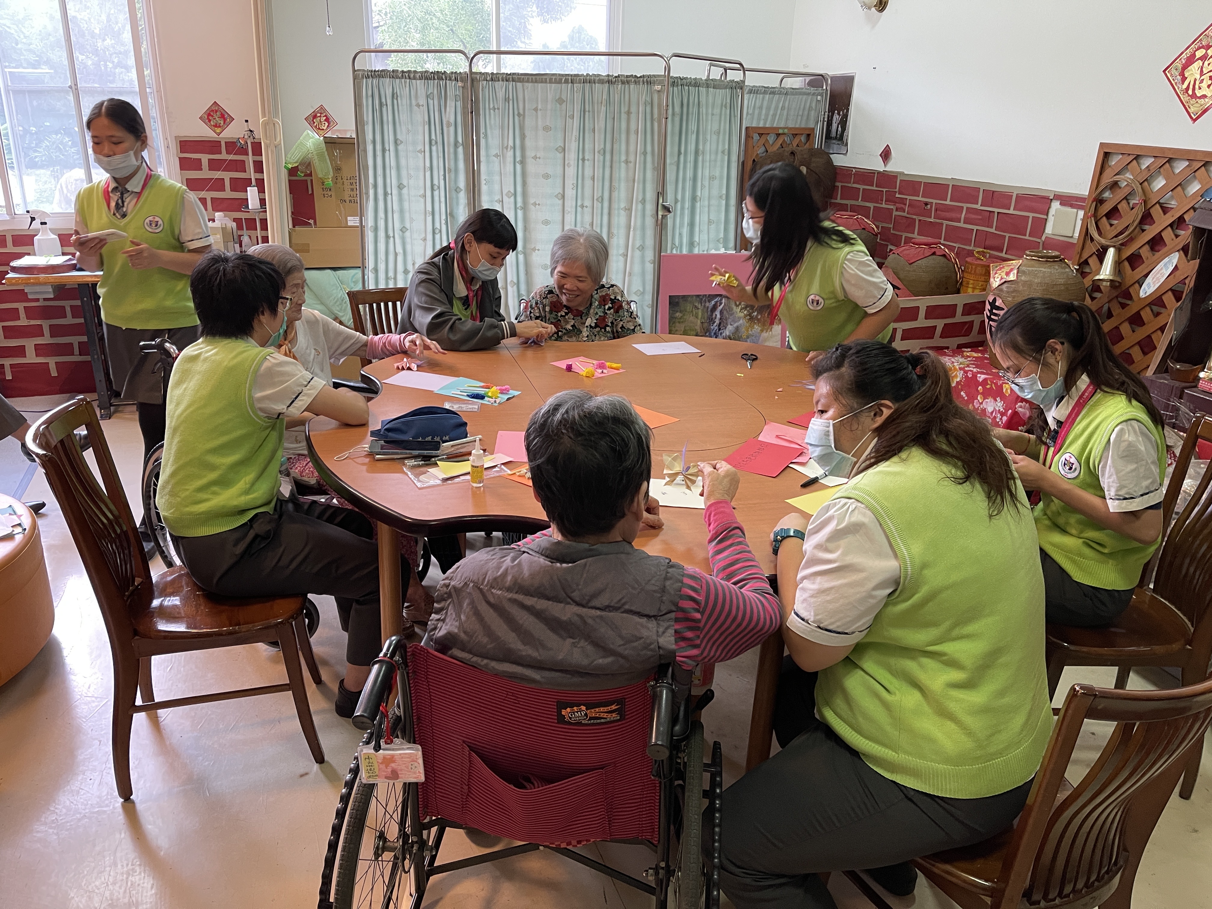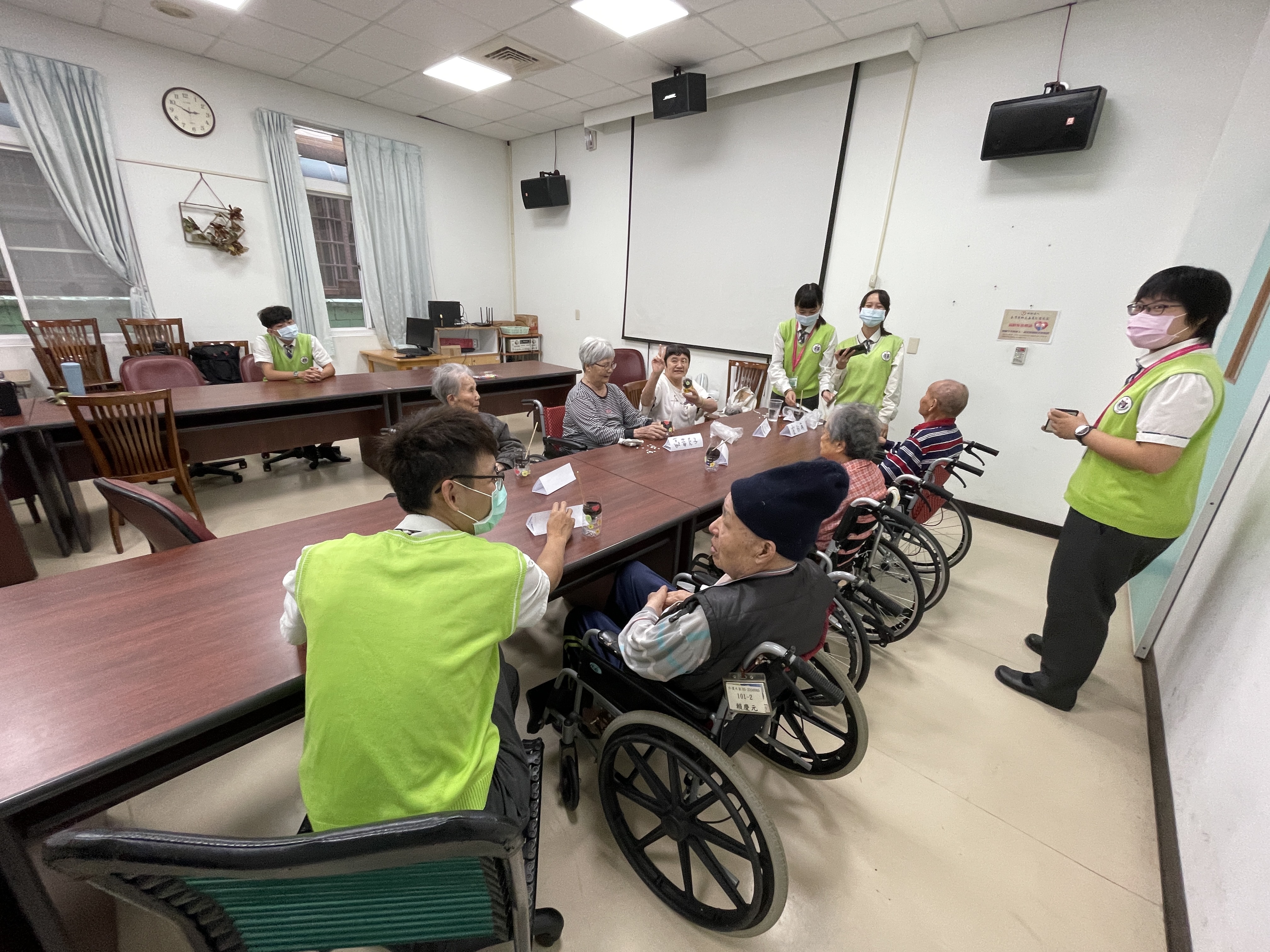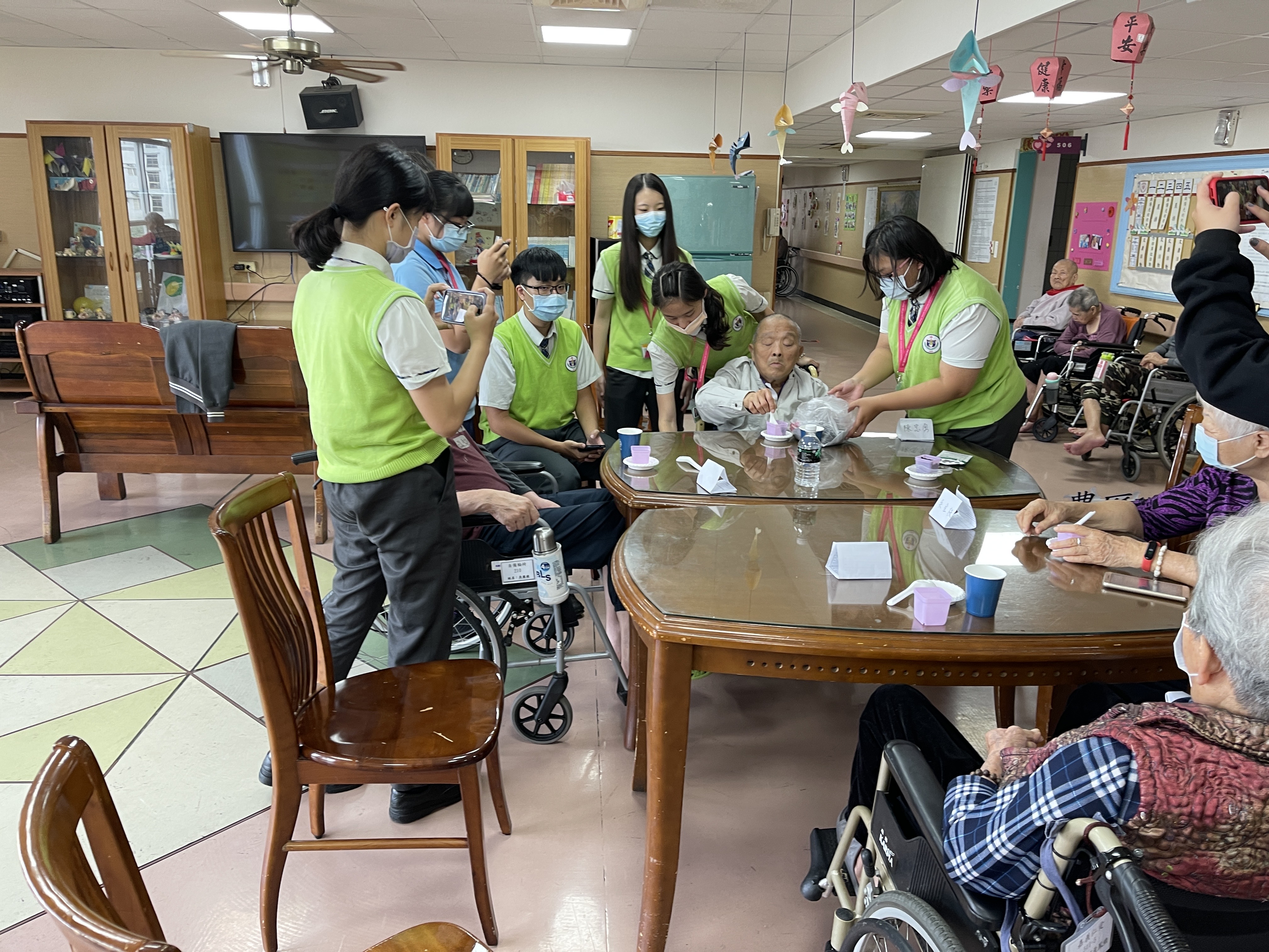 今日由崇仁護校學生關懷本院長者,與長輩們聊聊天並帶領他們參與些園藝活動,度過一個特別溫暖的午後時光。
