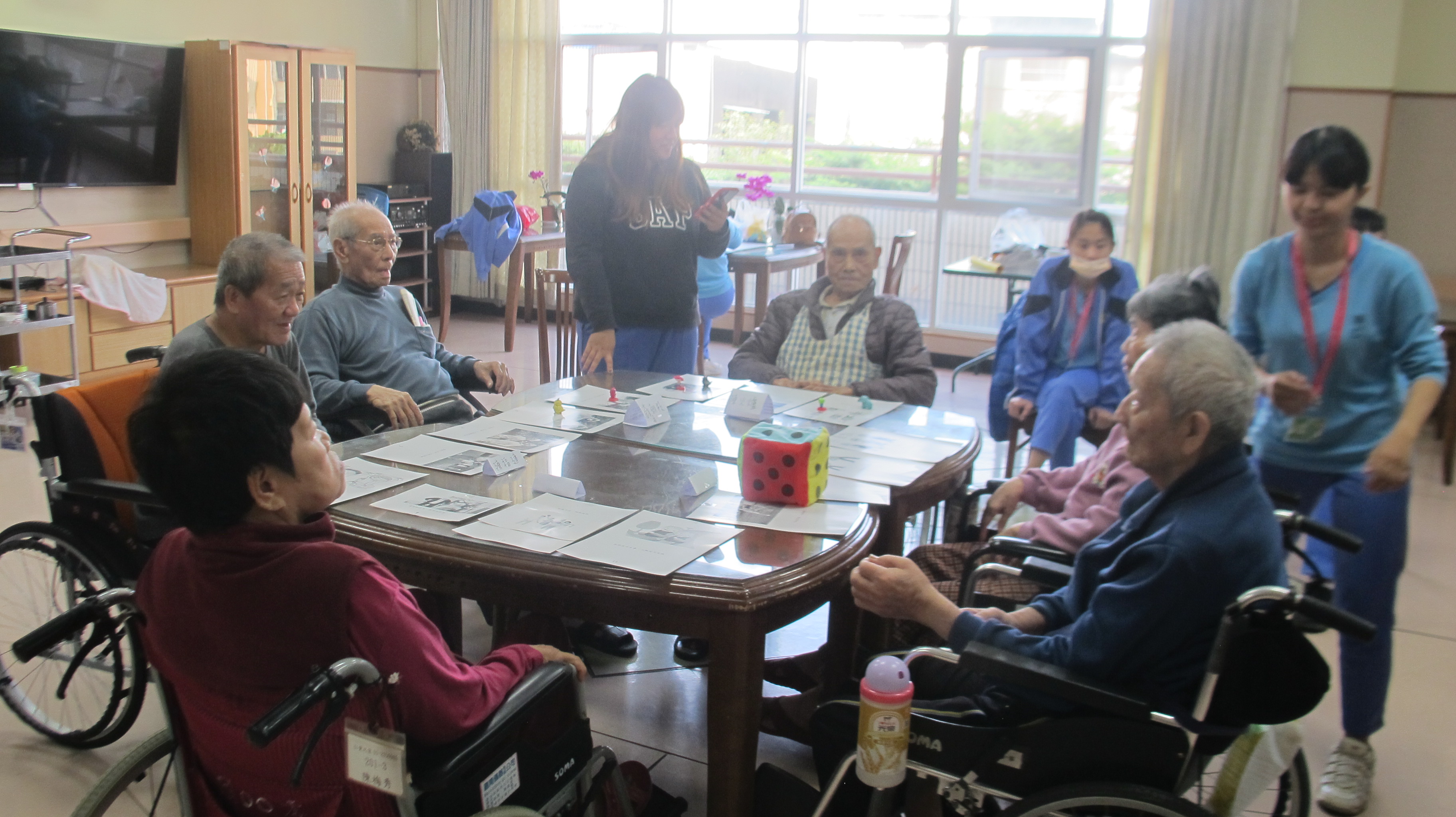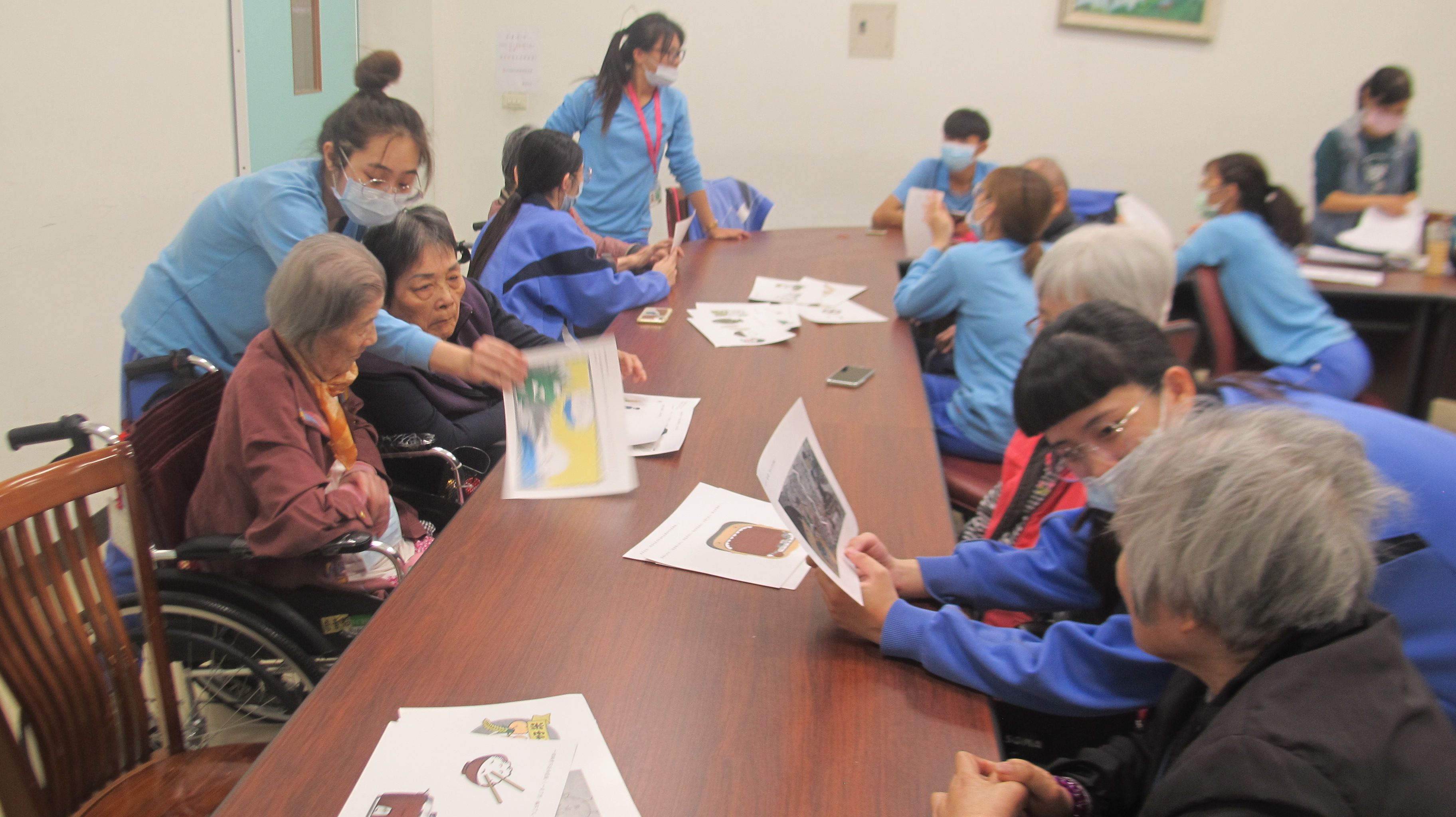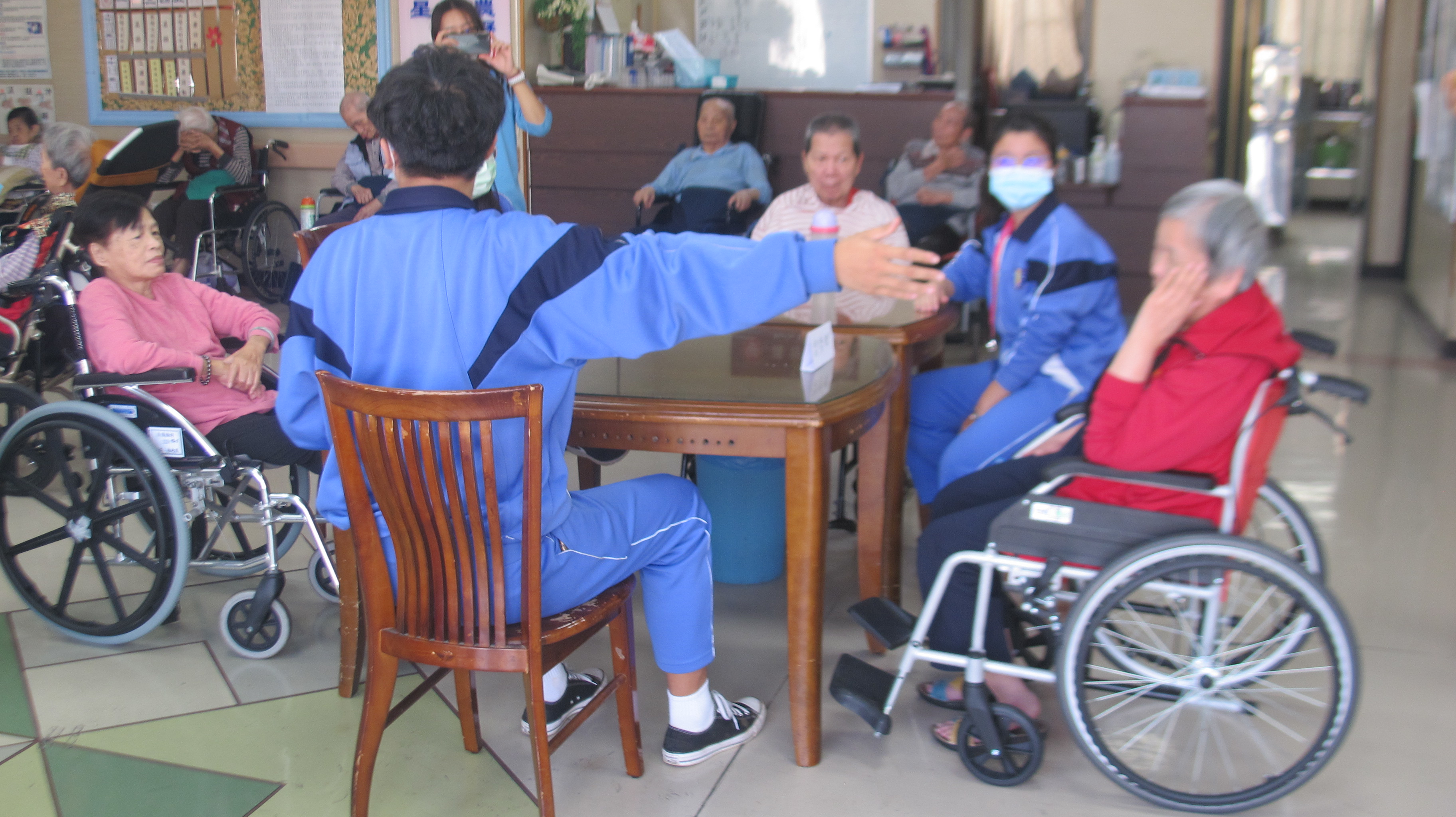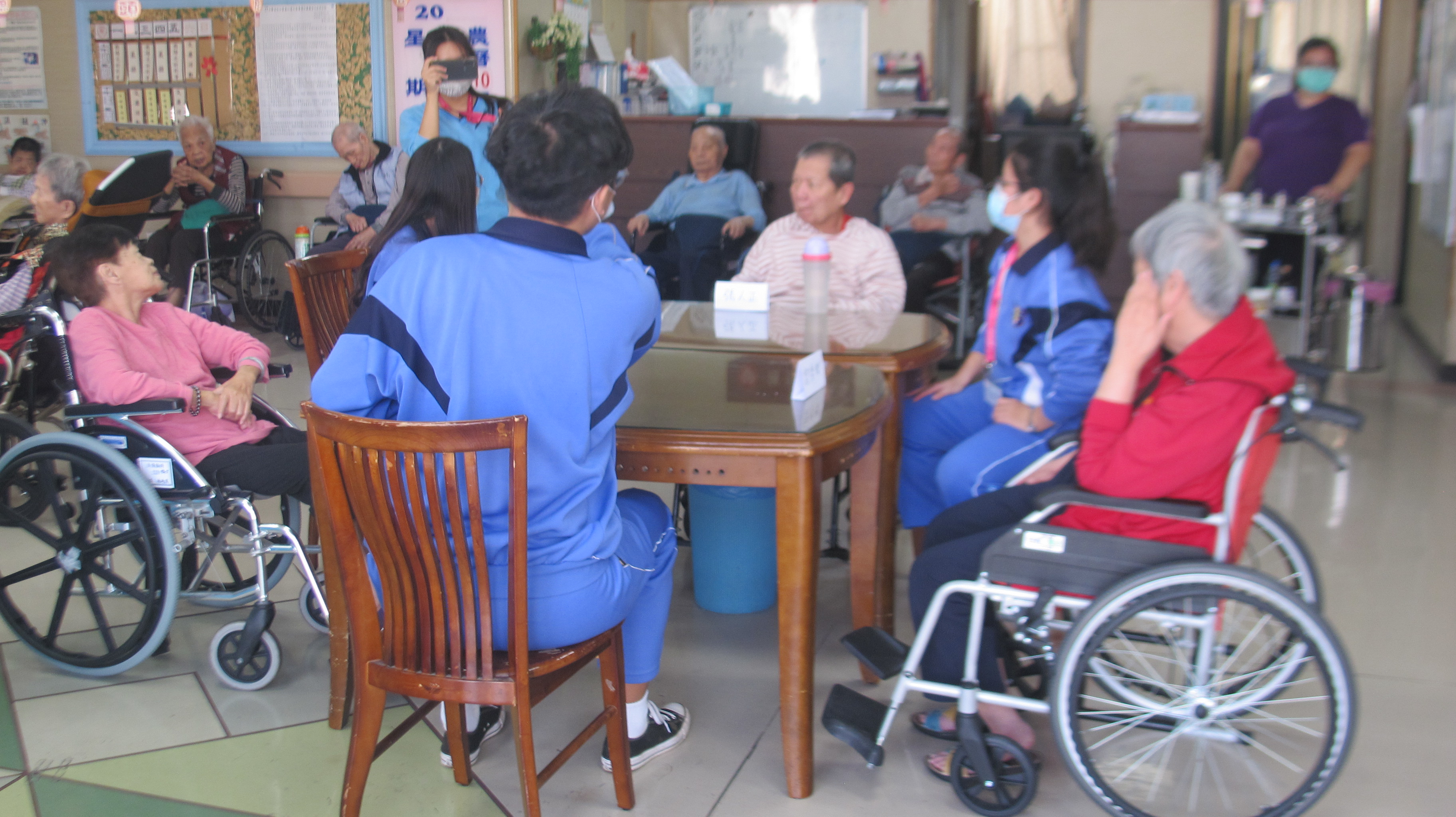 今日由崇仁護校學生關懷本院長者,與長輩們聊聊天並帶領他們參與些園藝活動,度過一個特別溫暖的午後時光。