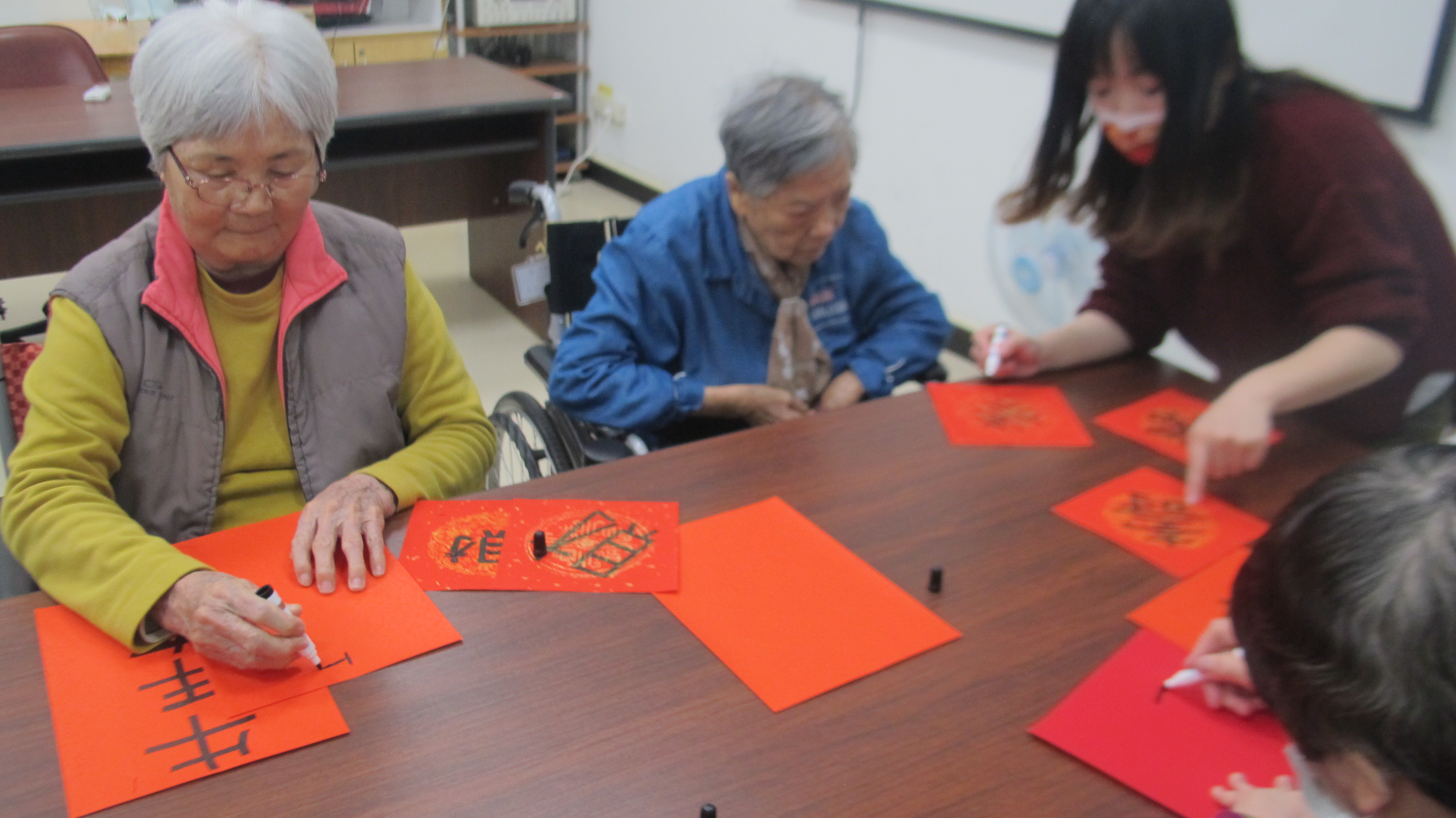 服務項目 活動剪影 志工團體 2021-02-08志工寫春聯活動 新的一年又到了,今天下午由志工帶來寫春聯活動,讓阿公阿嬤們自行動動手寫春聯,有的長輩笑得合不攏嘴,有的長輩感到額外驚訝與驚喜,大家都以非常歡樂的心情來迎接新的一年。 返回