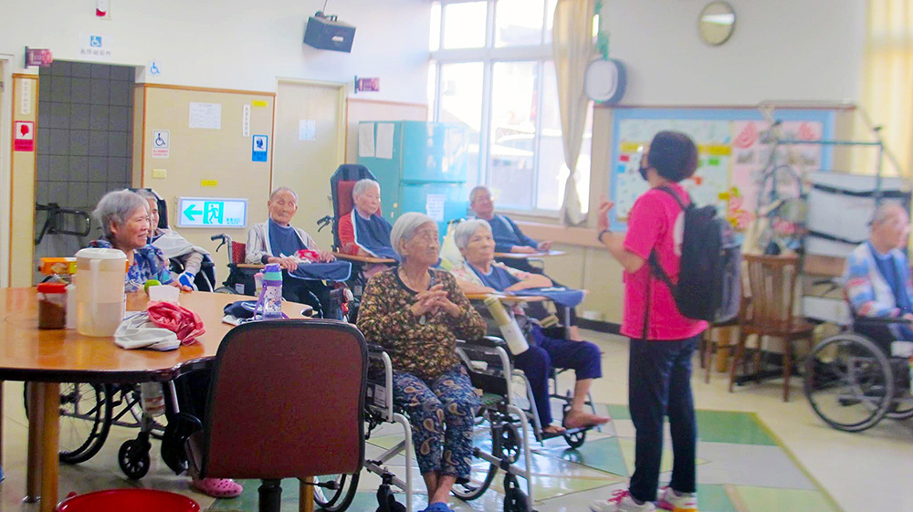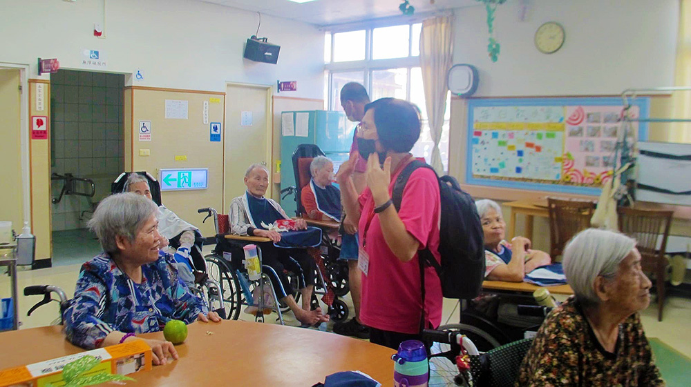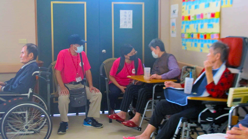 今天很高興有信望愛的兩位志工,分別是牧師夫妻檔來機構關懷長輩,過程與長輩有互動且為長輩禱告,長輩們都很開心.