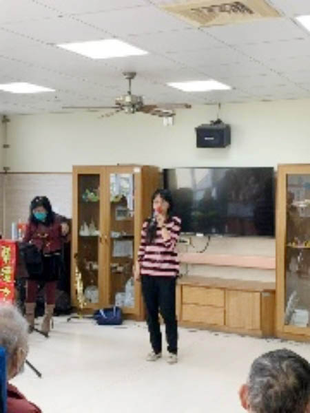 表演者演唱歌曲及吹奏薩克斯風及長笛給予長者聆聽,現場與住民有互動。