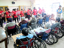 服務項目 活動剪影 日常活動 2014-12-04 第四季生日會 今天是本年度第四次舉辦的長者慶生會,本家準備了蛋糕為10月到12月出生的長者們慶賀,並邀請外部團體來為長者們慶生及表演,長者們都非常開心。 返回