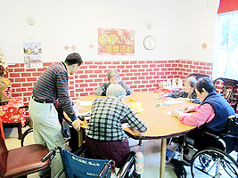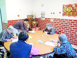 服務項目 活動剪影 日常活動 2014-11-25 藝術團體 由於以往長者們是以水彩筆做畫,所以本次的藝術團體讓長者們嘗試以粉筆完成圖畫,剛開始長者們還不習慣以粉筆繪圖,之後慢慢習慣也可做出渲染的效果,完成圖畫後再將摺紙作品貼於旁邊加以美化以完成此次的作品。 返回