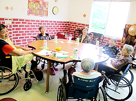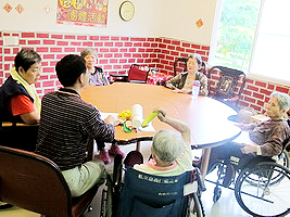 本次的藝術團體搭配聖經故事,讓長輩們依照神創造人事物的順序,將事先準備好的圖案貼在飲料杯上,進行藝術創作。