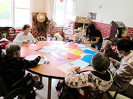 本次的藝術團體是讓長者們運用不同顏色、不同形狀的色紙進行拼貼,參加的長者們紛紛發揮創意,創造出一幅幅美麗的作品。
