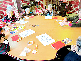 今天的園藝團體是除了讓長者們動手繪製小花,還邀請長者們挑選一張自己最喜歡的個人照,並動手做出獨一無二的個人相框。