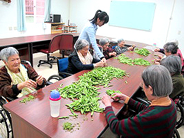 服務項目 活動剪影 日常活動 2014-03-06 園藝團體 這次的園藝團體是「分菜」,有甜豆、荷蘭豆、菜豆、豌豆....等種類,長輩們紛紛發揮年輕時的看家本領,不一會兒的時間,就把整車的菜都給分完了,過程中,彼此也分享自己過去的經驗互相交流學習。 返回
