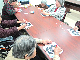 服務項目 活動剪影 日常活動 2014-01-16 園藝團體 今天,由社工帶領的園藝團體是,讓長者繪製屬於自己的小花,長者們都相當認真的作畫,也發揮了十足的創意,長者們更是不藏私,願意將這些美麗的作品佈置在本家的樓層中。 返回