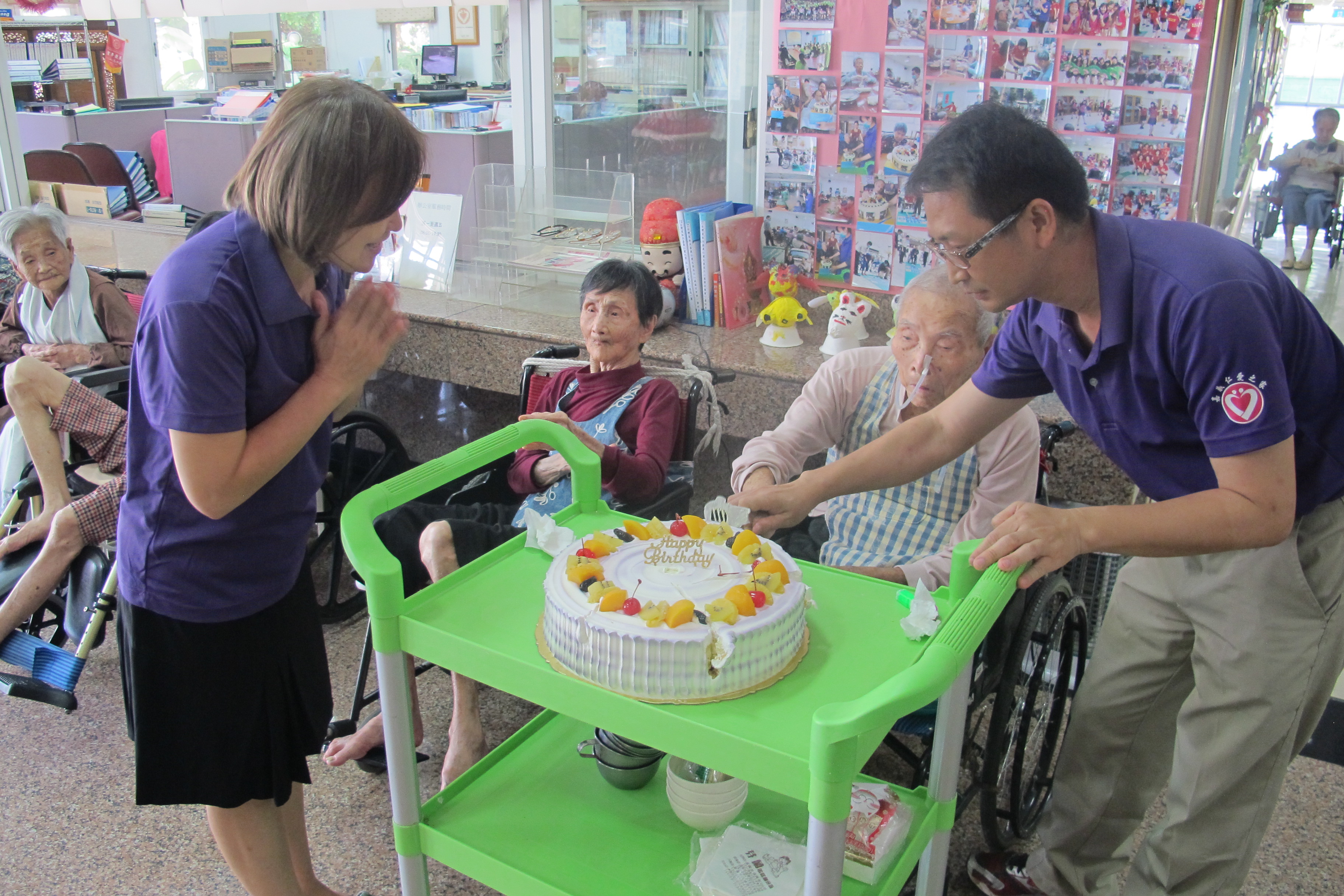 服務項目 活動剪影 日常活動 2016-06-17-第二季慶生會 今天下午舉辦今年第二季慶生會活動慶祝阿公阿嬤的生日,開始前先帶壽星至大廳集合、準備蛋糕及音樂設備,活動開始首先一同唱生日快樂歌祝福壽星,接著依序讓壽星切個蛋糕,之後就是分配蛋糕給阿公阿嬤們享用,阿公阿嬤都吃得很高興,吃完蛋糕後,帶長者回各層樓順利結束今天的慶生會。 返回