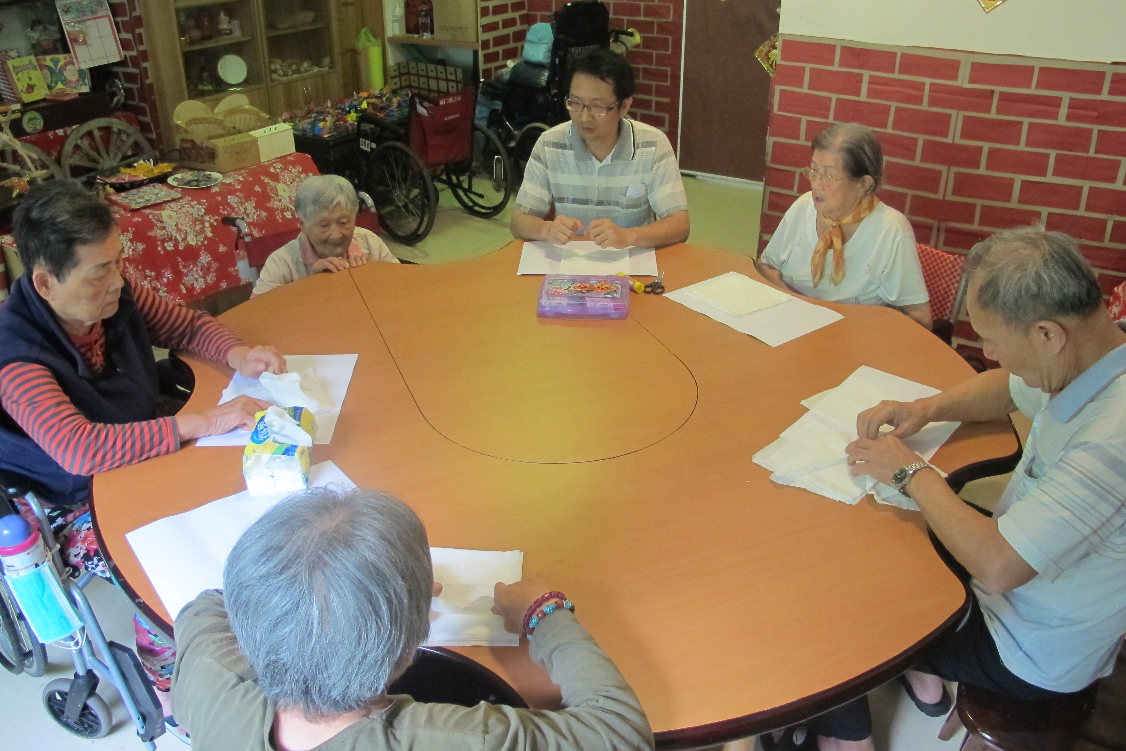 服務項目 活動剪影 日常活動 2016-07-12-藝術團體 今天下午帶領長者們進行藝術創作,藉由面紙創作,將面紙對齊、堆疊、綑綁、修剪,再讓長者們將面紙末端塗上自己喜歡的顏料顏色,攤開至於於圖畫紙上;成為一朵朵美麗的花朵。 返回