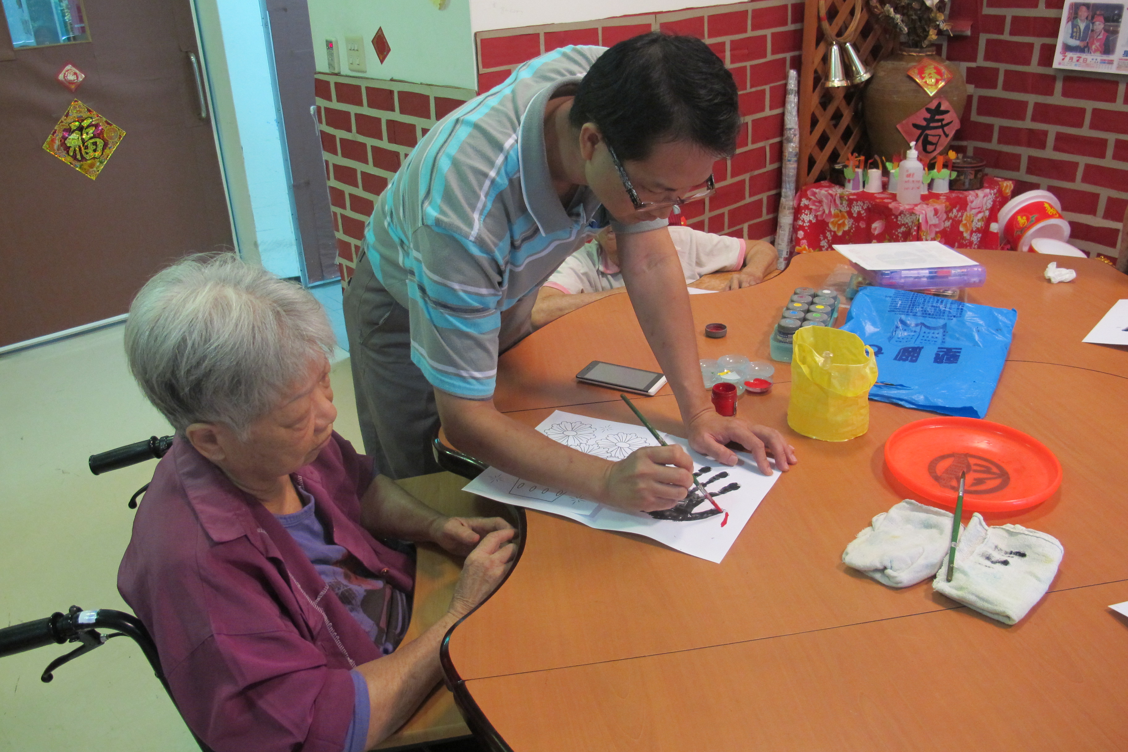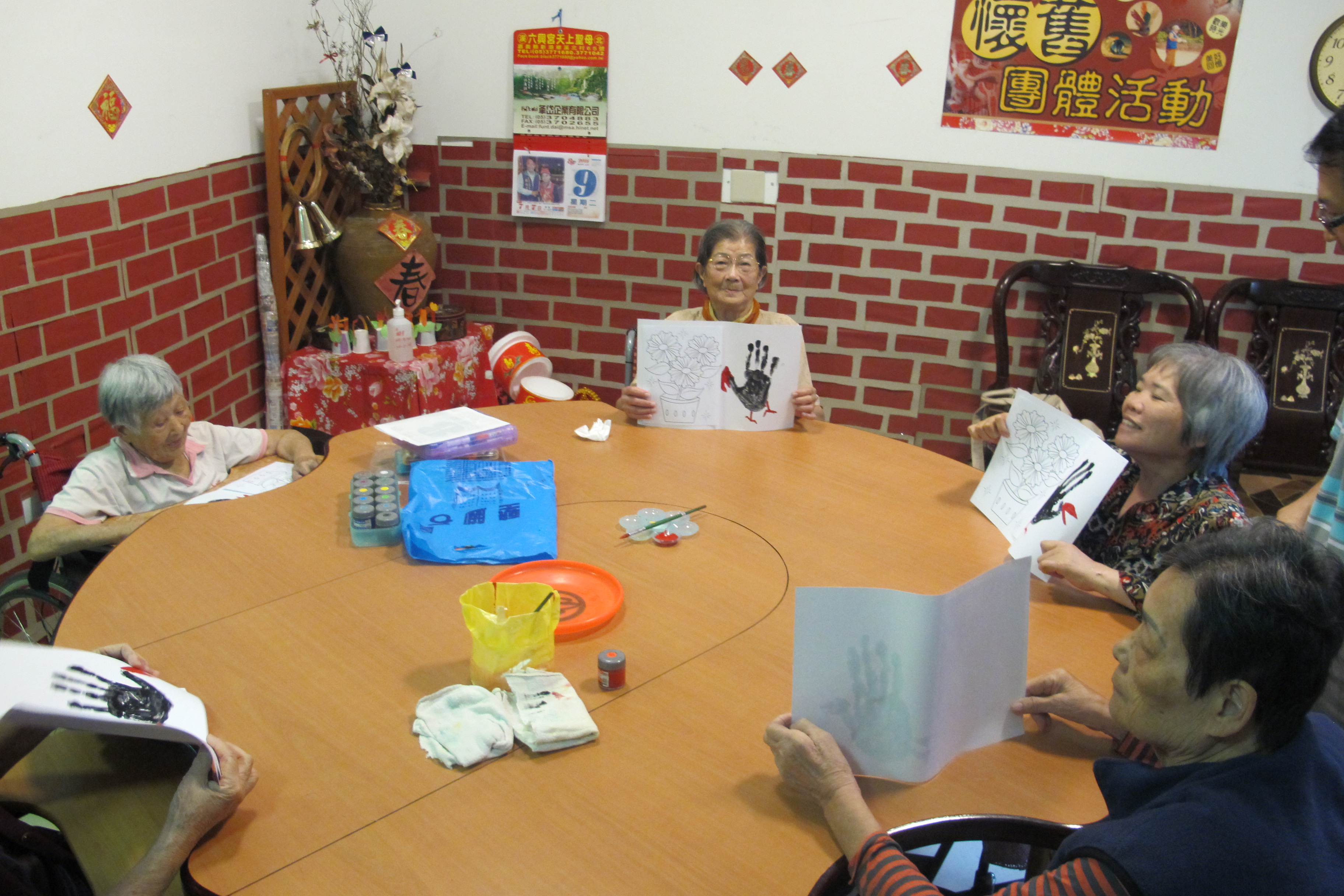 服務項目 活動剪影 日常活動 2016-08-09-藝術團體 今天下午帶領長者們進行藝術創作,藉由畫紙創作,讓長者們雙手沾滿顏料,按壓於圖畫紙上;再根據彩繪圖案模仿繪製,進行二度創作來完成此次活動。 返回