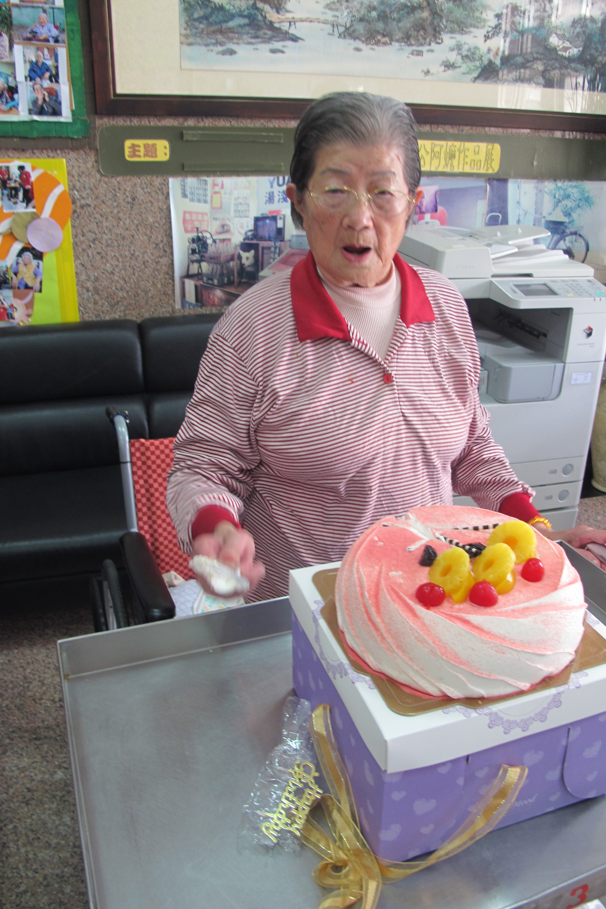 服務項目 活動剪影 日常活動 2017-03-22-第一季慶生會 今天下午舉辦今年第一季慶生會活動慶祝阿公阿嬤的生日,開始前先帶壽星至大廳集合、準備蛋糕及音樂設備,活動開始首先一同唱生日快樂歌祝福壽星,接著依序讓壽星切個蛋糕,之後就是分配蛋糕給阿公阿嬤們享用,阿公阿嬤都吃得很高興,吃完蛋糕後,帶長者回各層樓順利結束今天的慶生會。 返回