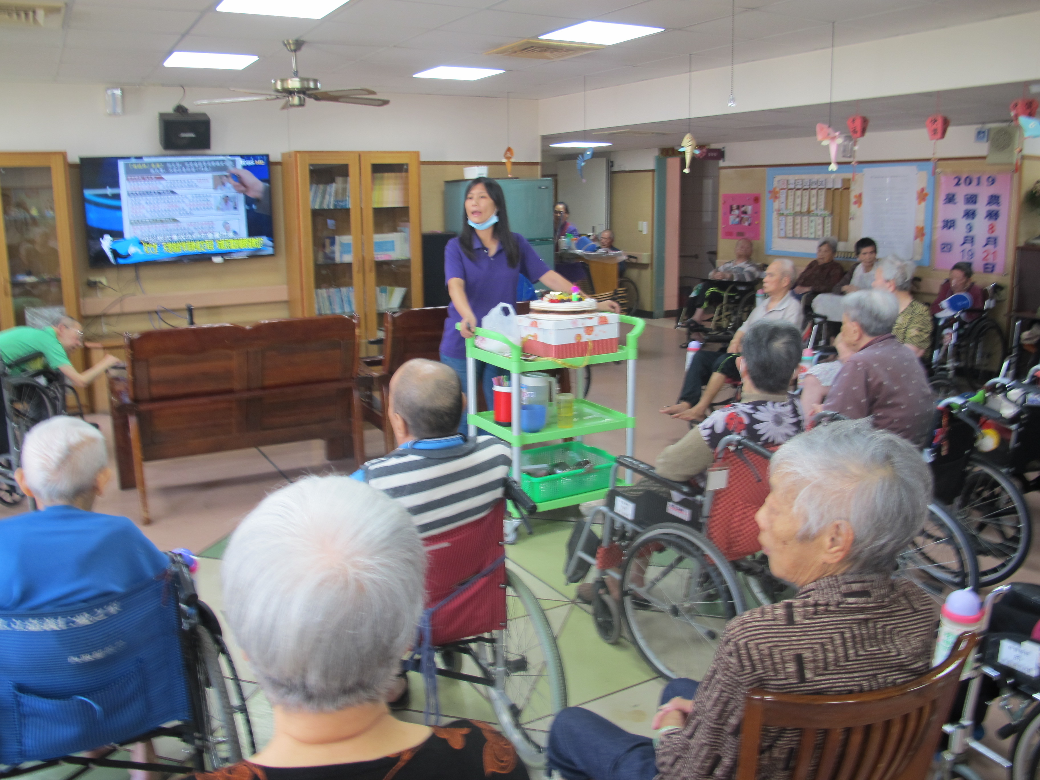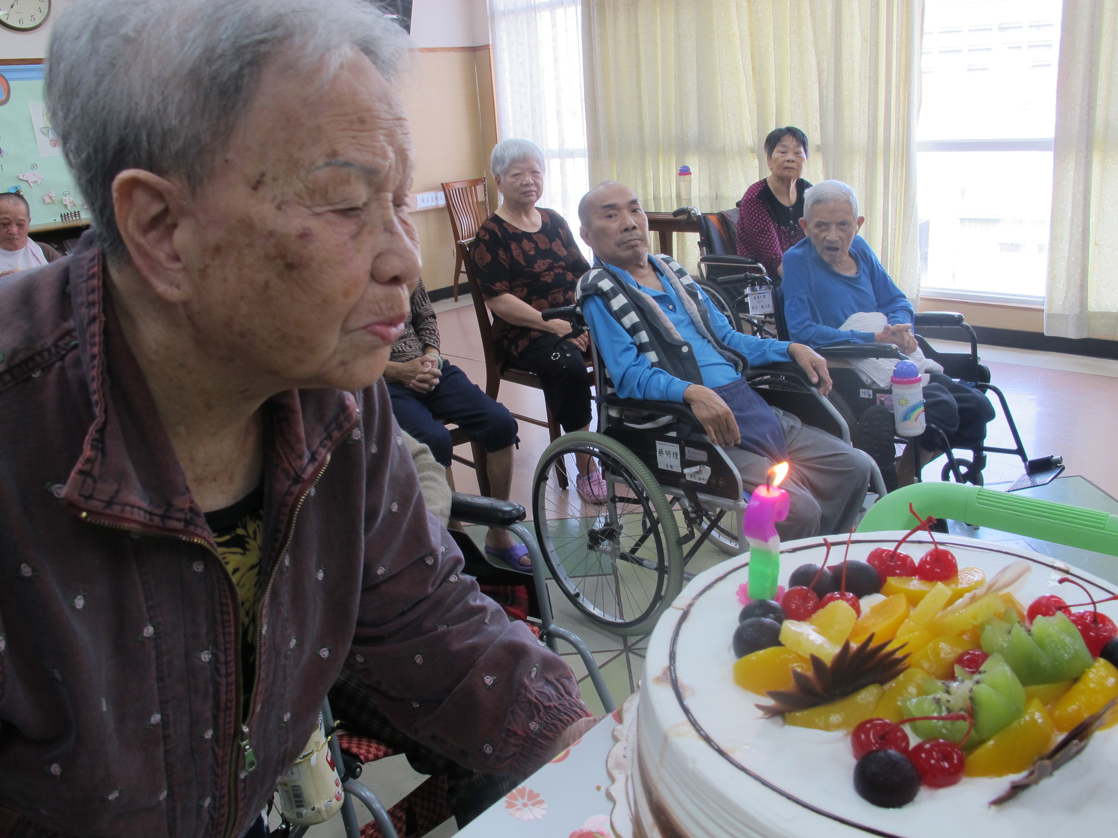 服務項目 活動剪影 日常活動 2019-9-19-第三季慶生會 今天下午舉辦今年第三季慶生會活動慶祝阿公阿嬤的生日,開始前先帶壽星至大廳集合、準備蛋糕及音樂設備,活動開始首先一同唱生日快樂歌祝福壽星,接著依序讓壽星切個蛋糕,之後就是分配蛋糕給阿公阿嬤們享用,阿公阿嬤都吃得很高興,吃完蛋糕後,帶長者回各層樓順利結束今天的慶生會。 返回