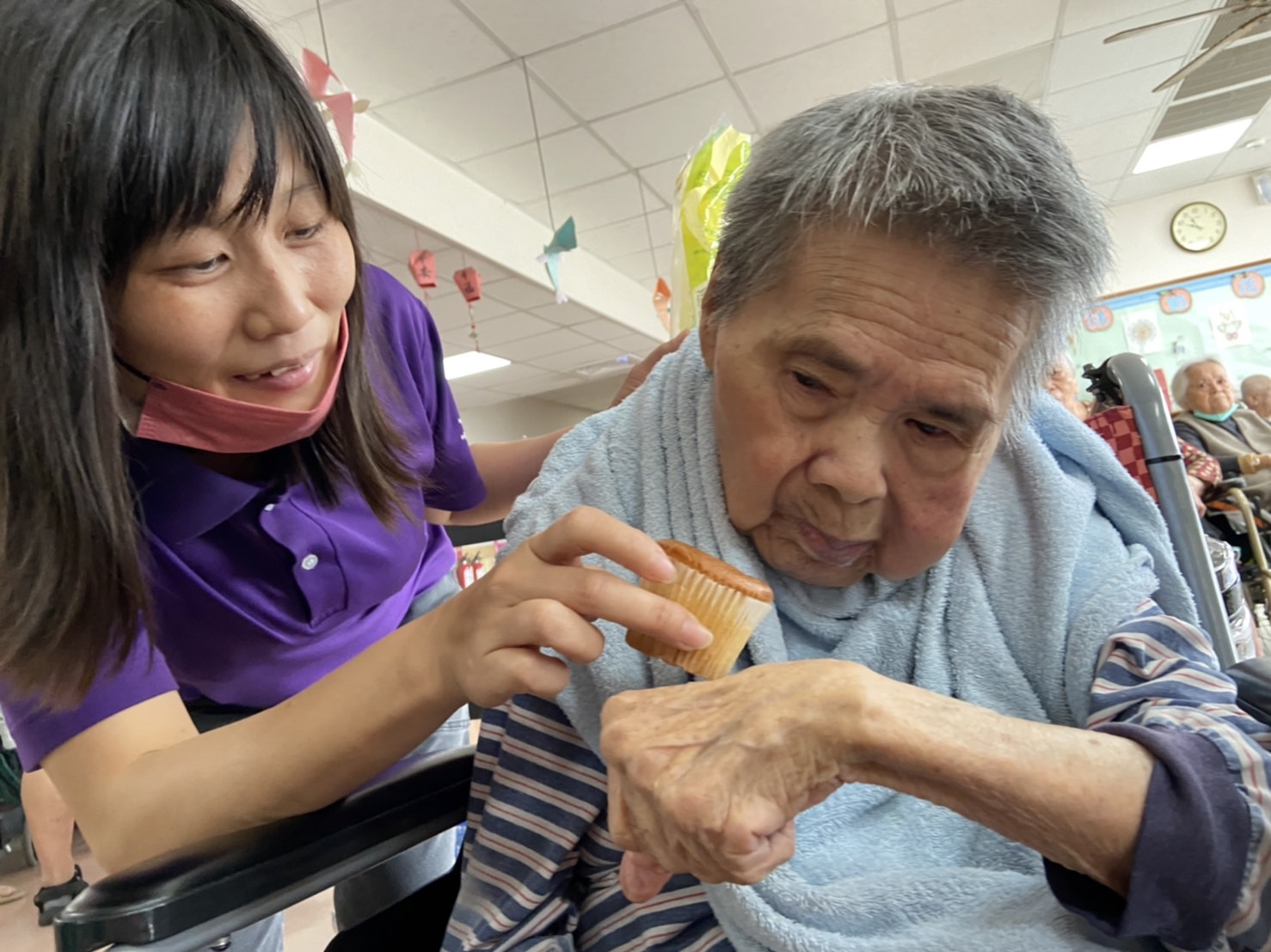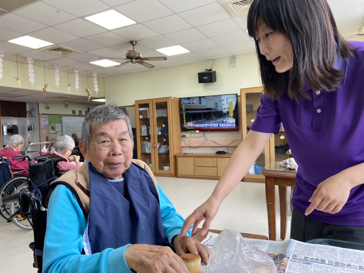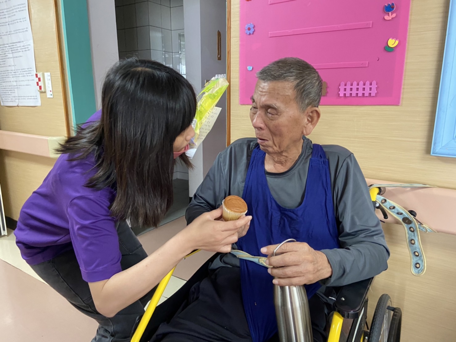 今天舉辦111年第一季慶生會,由社工,役男及會計一同到各樓層祝福壽星,發送蛋糕及唱生日快樂歌,長輩們都很開心.